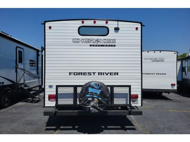 Whether it's a journey that will take you to new locations or a tried-and-true getaway to that favorite and memorable destination, the Forest River Cherokee Grey Wolf travel trailers and toy haulers are going to make the trip worth it every single time! You can travel in confidence with the premium wheel package, seamless roofing membrane with heat reflectivity, Power Gear frame technology with space-saver rail design, and Cherokee back-up camera system. The Cherokee Grey Wolf's interior is highly attractive with its stainless steel kitchen suite package and premium bedding ensemble and comforter. You will also find a black waste tank flush-out kit, an outside shower with hot and cold water, an armored underbelly tank enclosure, and an RV grill quick connect.