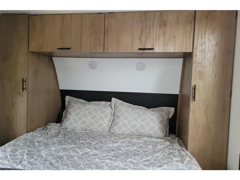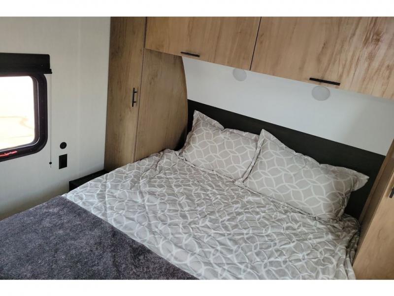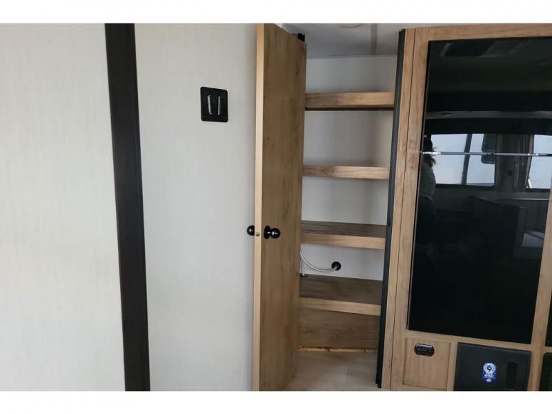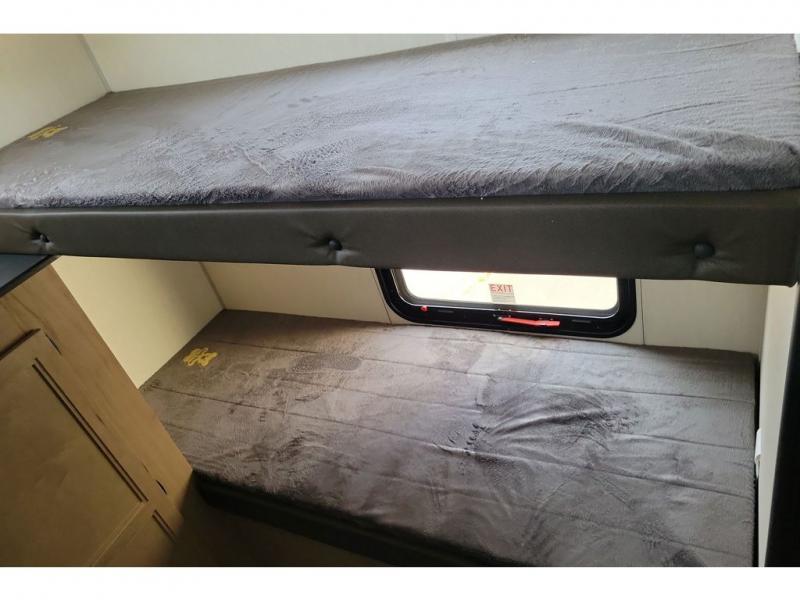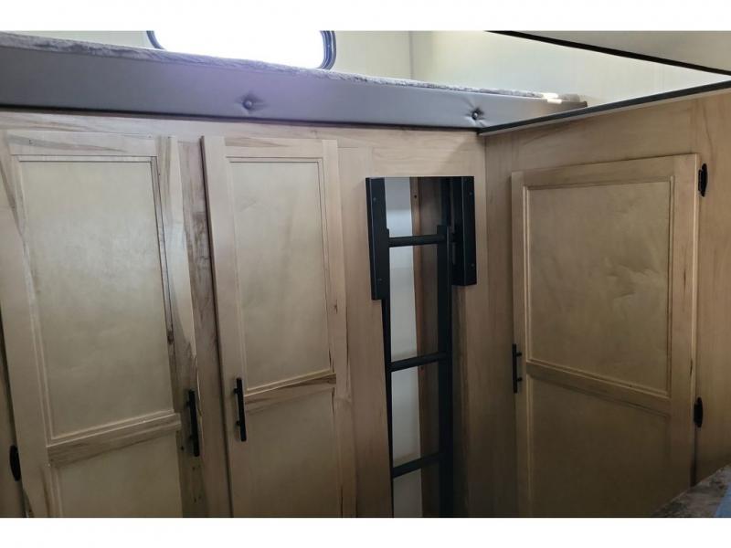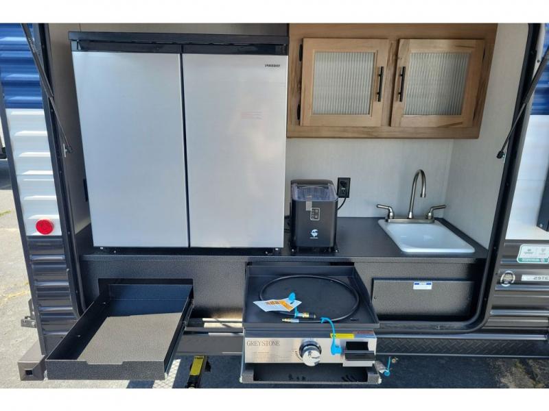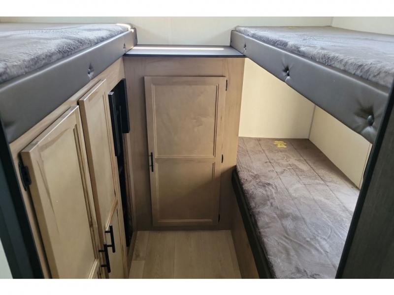 Your larger family will love spending weekends away with this Cherokee Grey Wolf travel trailer as their home away from home. This model offers lots of sleeping space with three bunk beds in the rear private bunkhouse. In the front, there is a master suite with wardrobes and nightstands on either side of the RV king bed, and it even has private access to the dual-entry bath. The two entry doors will make accessing the trailer easy for everyone, and you will appreciate the abundant storage throughout this unit including large overhead cabinets, a spacious pantry, and numerous outside storage compartments for all of your outdoor gear. There's even an outside bar & grill!