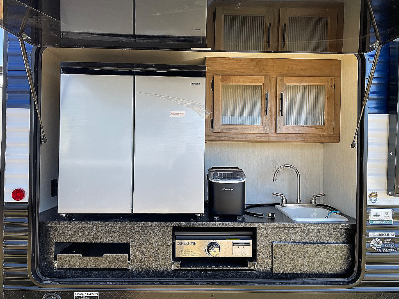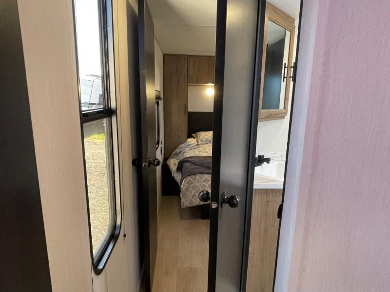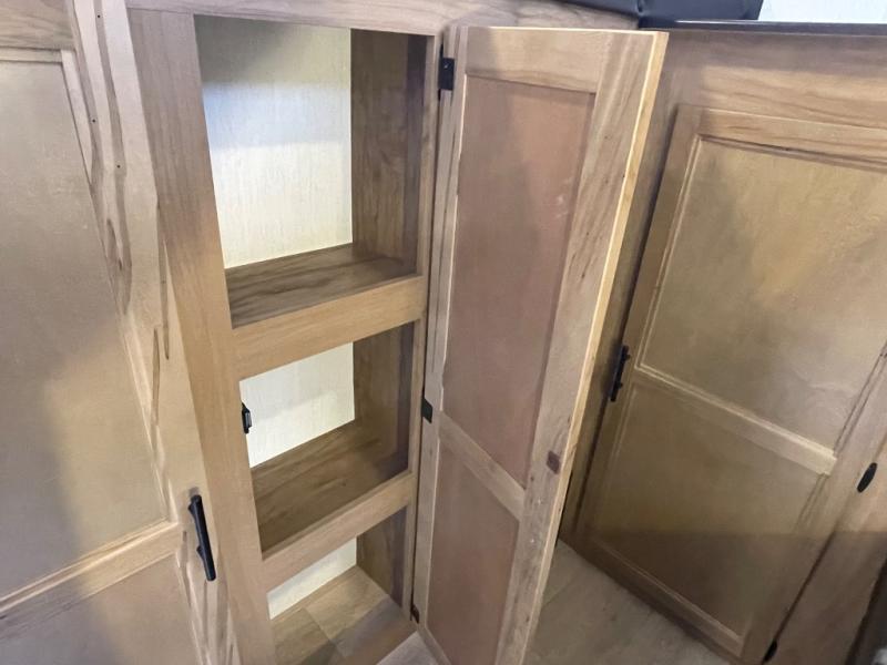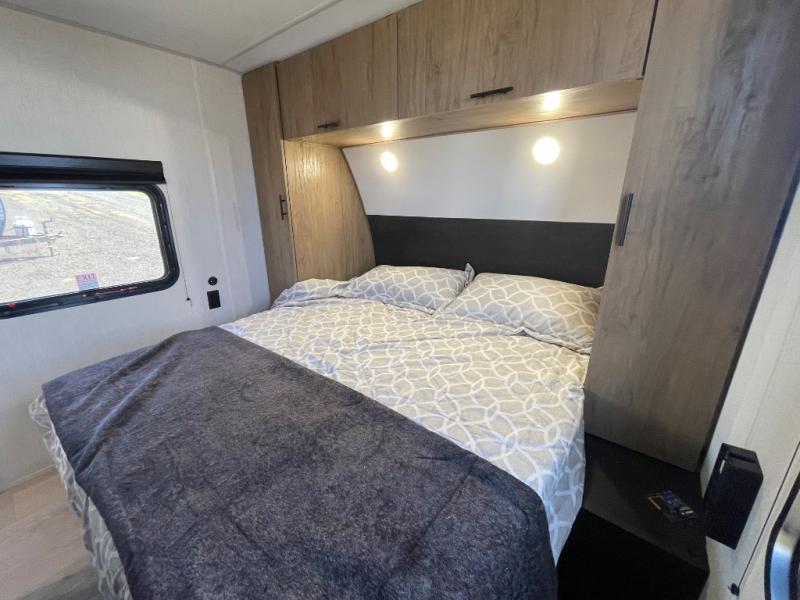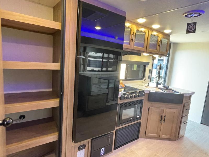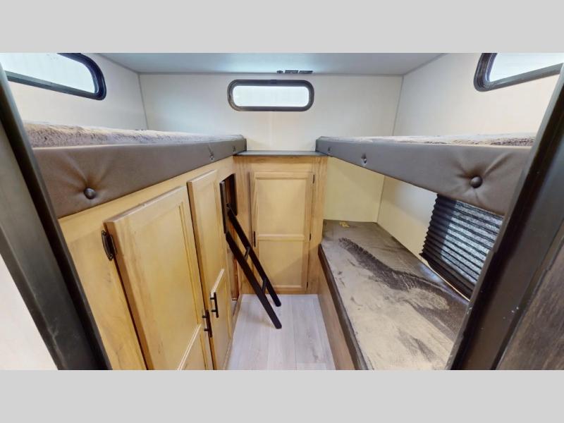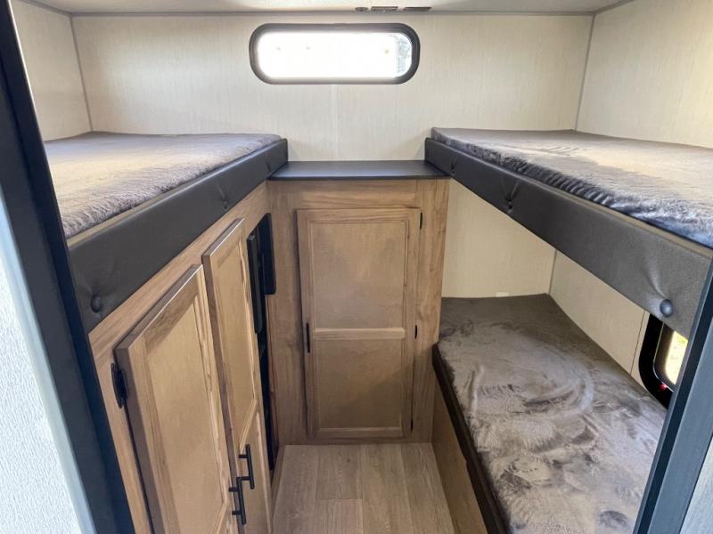 Your larger family will love spending weekends away with this Cherokee Grey Wolf travel trailer as their home away from home. This model offers lots of sleeping space with three bunk beds in the rear private bunkhouse. In the front, there is a master suite with wardrobes and nightstands on either side of the RV king bed, and it even has private access to the dual-entry bath. The two entry doors will make accessing the trailer easy for everyone, and you will appreciate the abundant storage throughout this unit including large overhead cabinets, a spacious pantry, and numerous outside storage compartments for all of your outdoor gear. There's even an outside bar & grill!