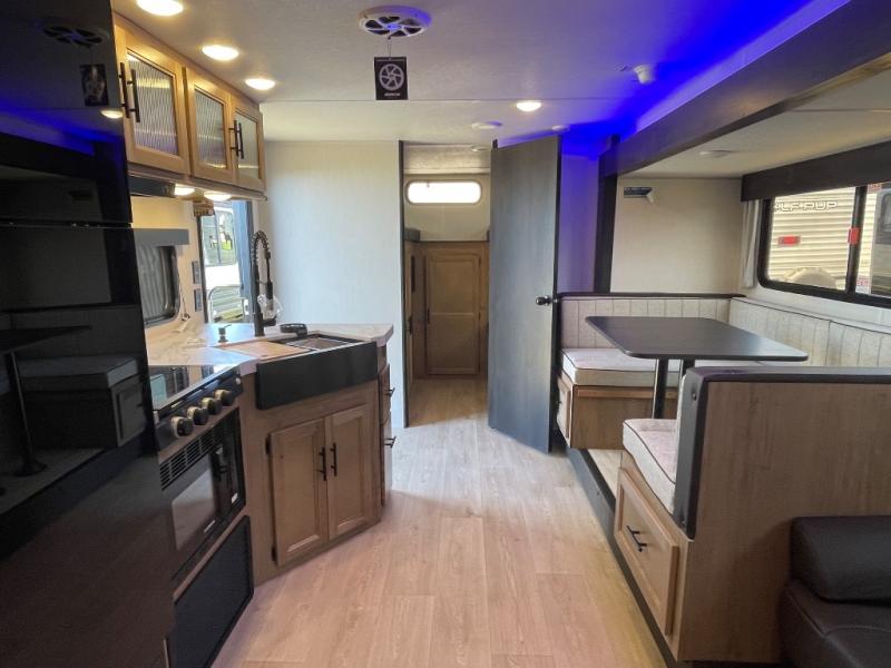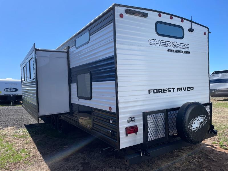 Whether it's a journey that will take you to new locations or a tried-and-true getaway to that favorite and memorable destination, the Forest River Cherokee Grey Wolf travel trailers and toy haulers are going to make the trip worth it every single time! You can travel in confidence with the premium wheel package, seamless roofing membrane with heat reflectivity, Power Gear frame technology with space-saver rail design, and Cherokee back-up camera system. The Cherokee Grey Wolf's interior is highly attractive with its stainless steel kitchen suite package and premium bedding ensemble and comforter. You will also find a black waste tank flush-out kit, an outside shower with hot and cold water, an armored underbelly tank enclosure, and an RV grill quick connect.