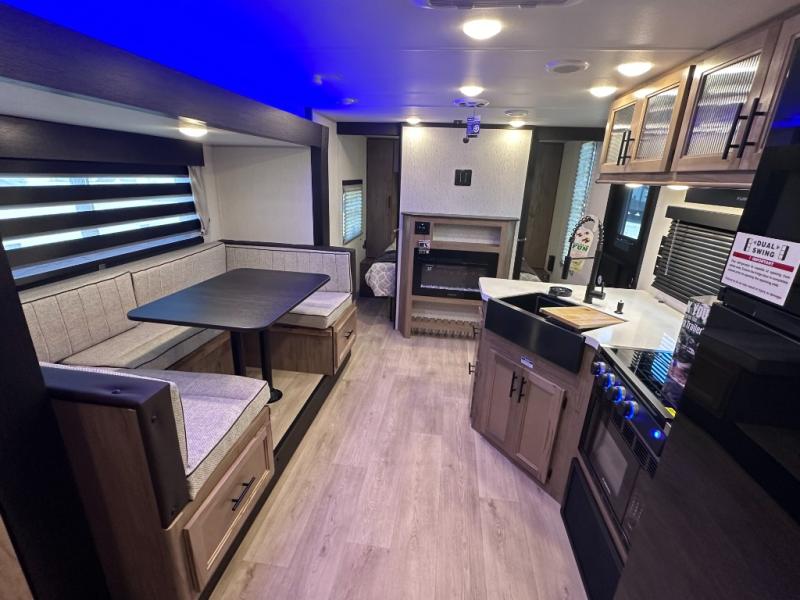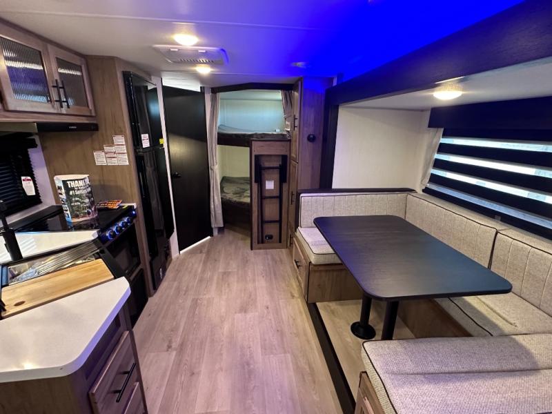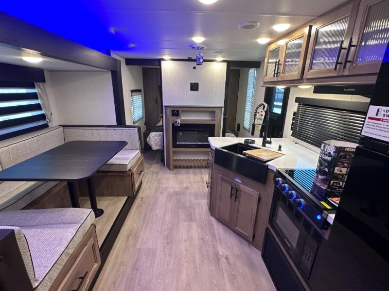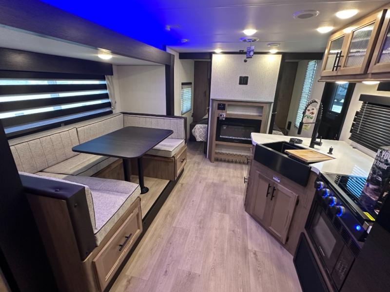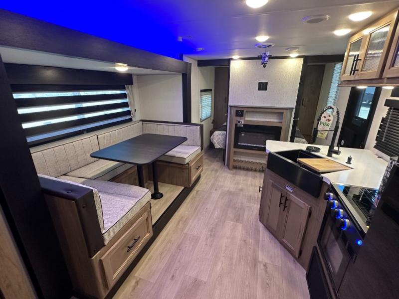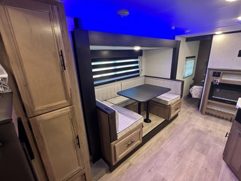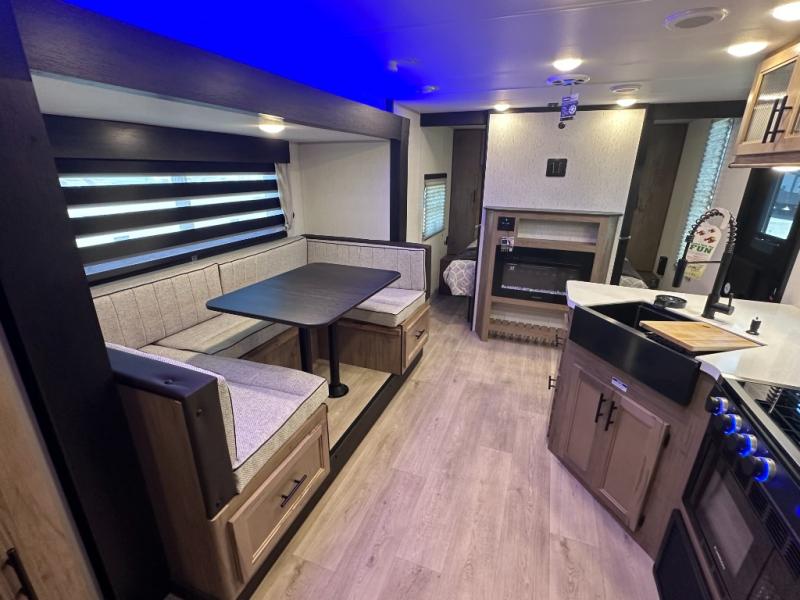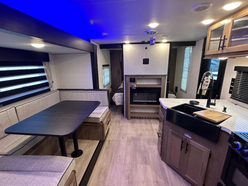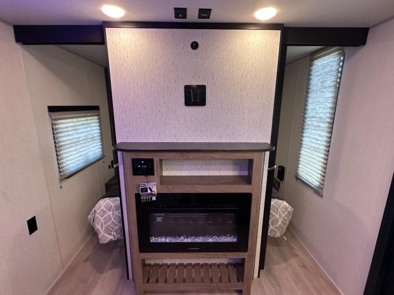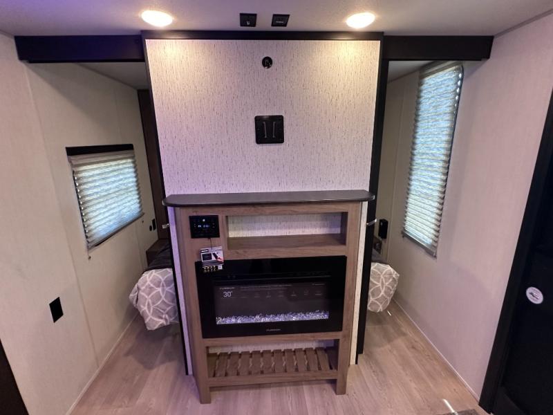 SMOOTH AZDEL FIBERGLASS/ 12V 11CF Refer / MEGA DINETTE SLIDE / TWO ENTRY DOORS / TWO FULL SIZE BUNKS/FIRE PLACE