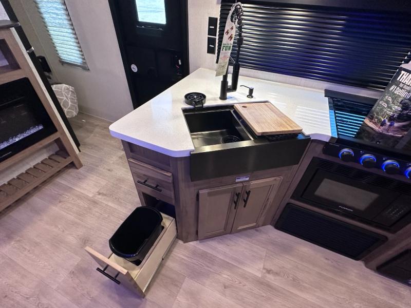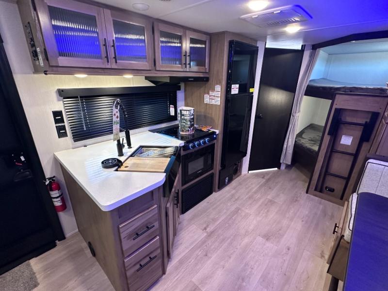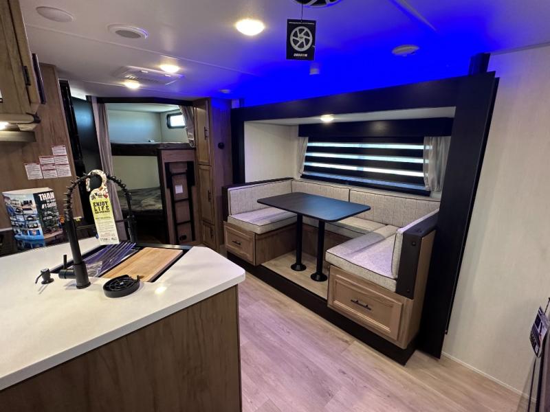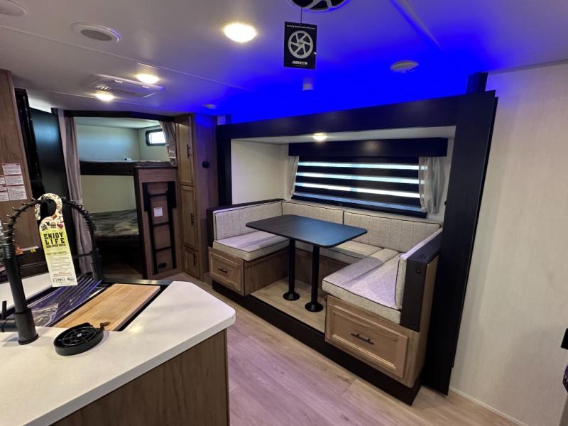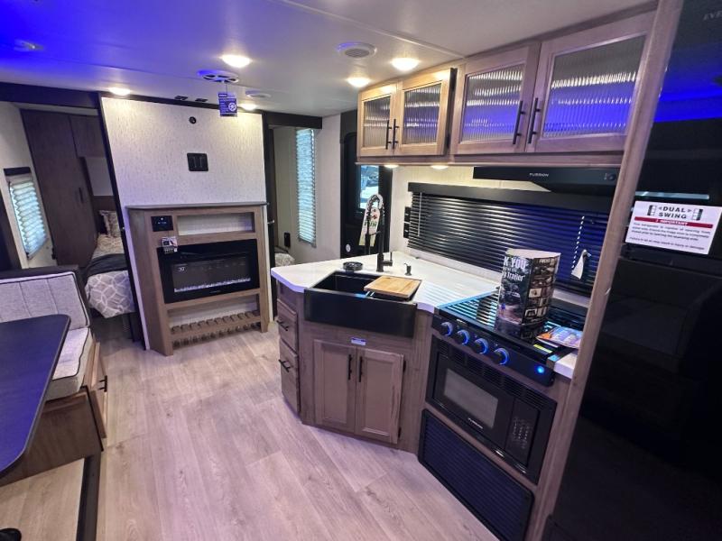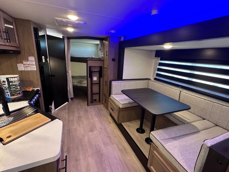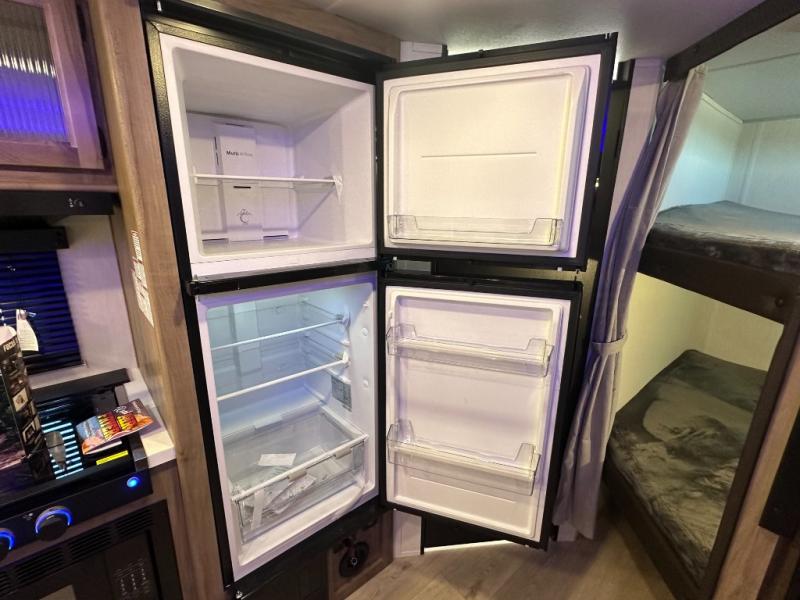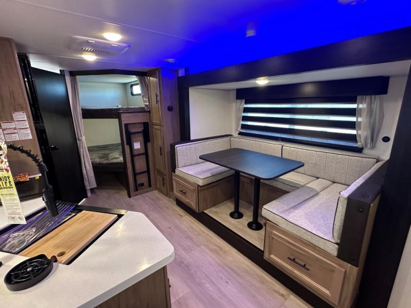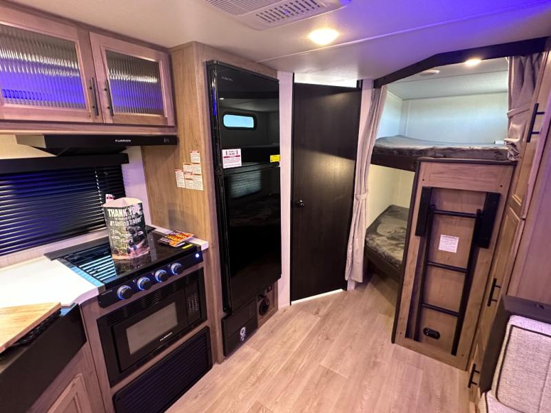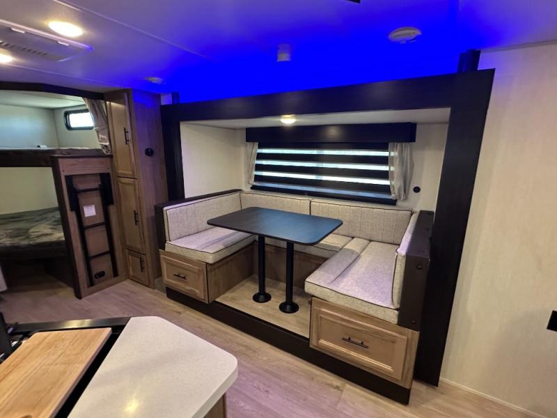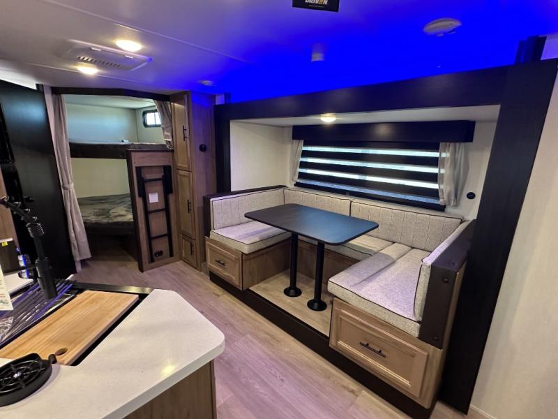 SMOOTH AZDEL FIBERGLASS/ 12V 11CF Refer / MEGA DINETTE SLIDE / TWO ENTRY DOORS / TWO FULL SIZE BUNKS/FIRE PLACE