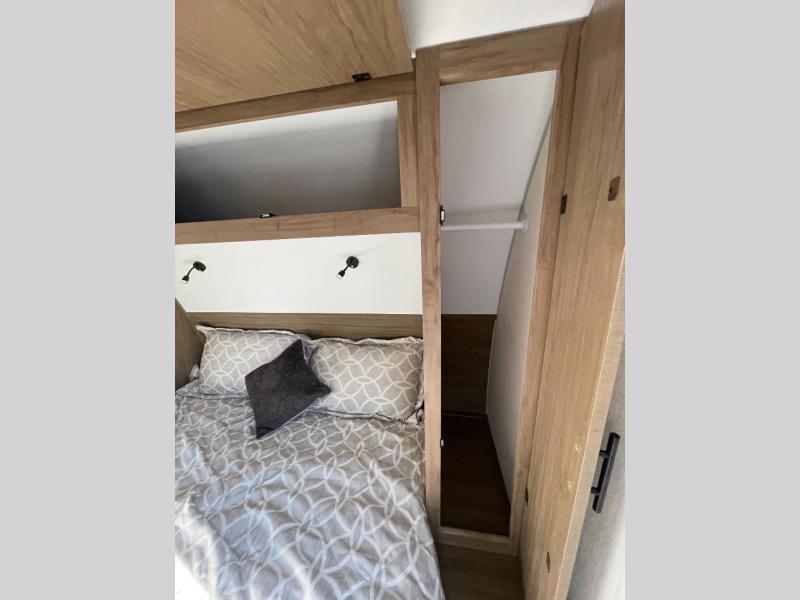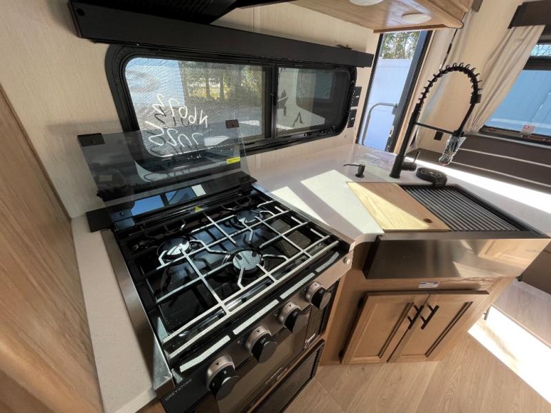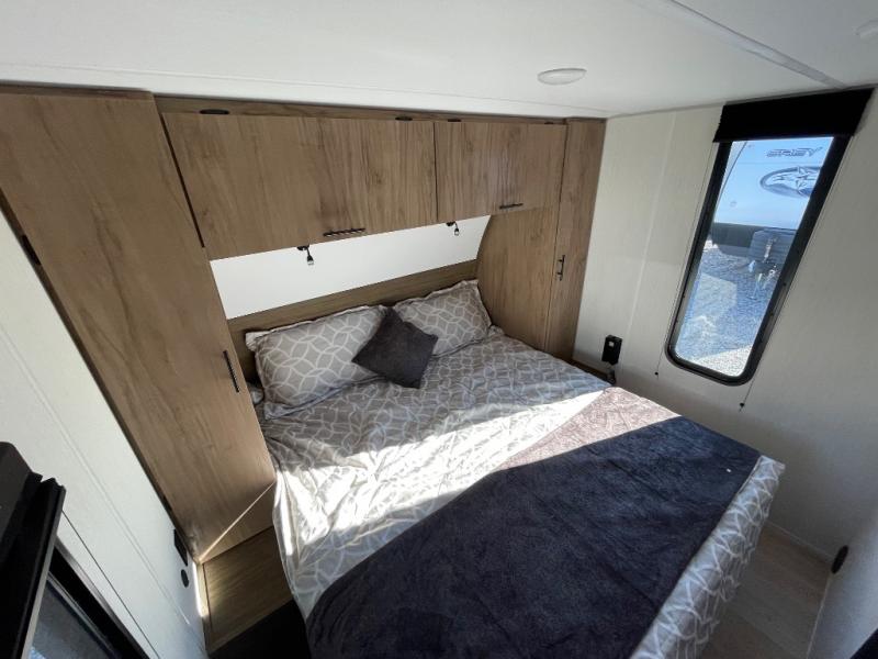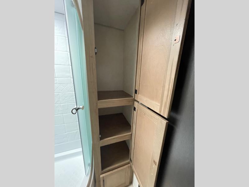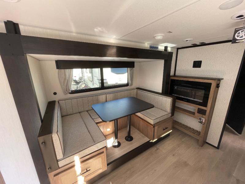This Cherokee Grey Wolf Black Label travel trailer is perfect for your small family and will leave you planning your next outing before you are back from your current weekend away! You will find all of the comforts you need with plenty of livable space including a U-shaped dinette slide. There is also a sofa for more seating when company arrives, and there are end tables on either side to prevent spills. A spacious walk-through bath leads to a front private bedroom where you will enjoy a great night's rest on a comfortable RV king bed. You will find ample storage for clothing in the wardrobes that are above handy nightstands for your personal things. There are even lights mounted above the bed on each side which makes it easy to read a couple of chapters before drifting off to sleep.
