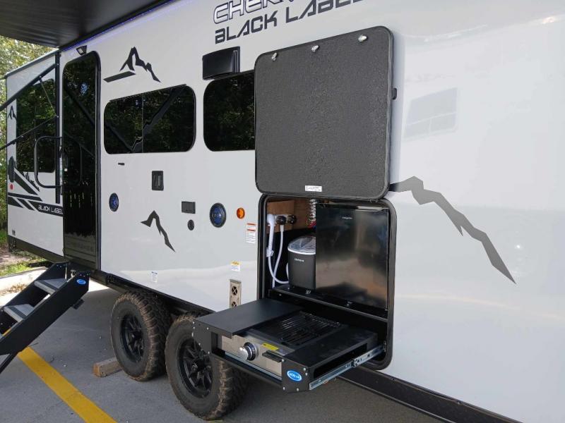 Whether it's a journey that will take you to new locations or a tried-and-true getaway to that favorite and memorable destination, the Forest River Cherokee Grey Wolf Black Label travel trailers and toy haulers are going to make the trip worth it every single time! The Black Label Package includes Thermo-Foil Arctic insulation, hung fiberglass gel coat sided walls, and frameless window package. There are also upgraded solid surface countertops and reading lights, plus designer cushion fabrics to make you feel right at home. You can travel in confidence with the premium wheel package, seamless roofing membrane with heat reflectivity, Power Gear frame technology with space-saver rail design, and Cherokee back-up camera system.