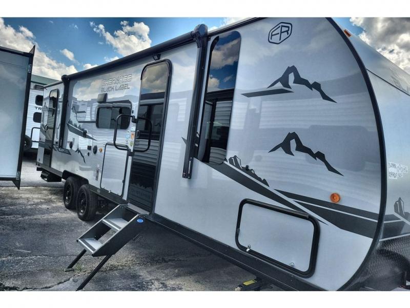 Whether it's a journey that will take you to new locations or a tried-and-true getaway to that favorite and memorable destination, the Forest River Cherokee Grey Wolf Black Label travel trailers and toy haulers are going to make the trip worth it every single time! The Black Label Package includes Thermo-Foil Arctic insulation, hung fiberglass gel coat sided walls, and frameless window package. There are also upgraded solid surface countertops and reading lights, plus designer cushion fabrics to make you feel right at home. You can travel in confidence with the premium wheel package, seamless roofing membrane with heat reflectivity, Power Gear frame technology with space-saver rail design, and Cherokee back-up camera system.