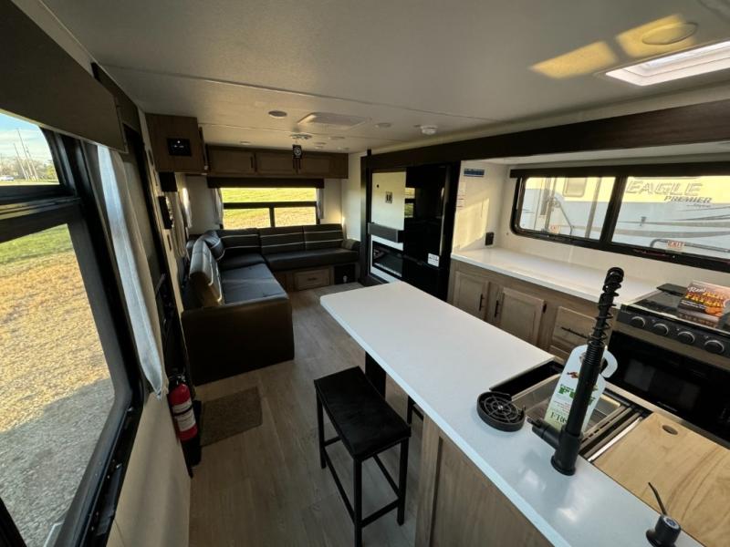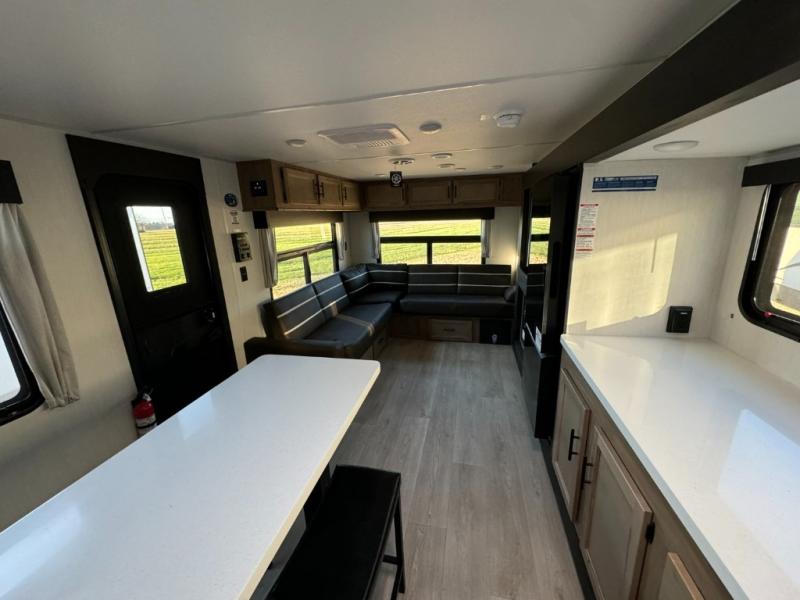 This 33'6" trailer blends stylish interior design, thoughtful Black Label upgrades, and functional layout—ideal for Michigan campers seeking elevated camping experiences.
