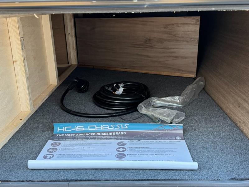 - Air Conditioning: 15,000 BTU central; Awning: 15' power LED strip