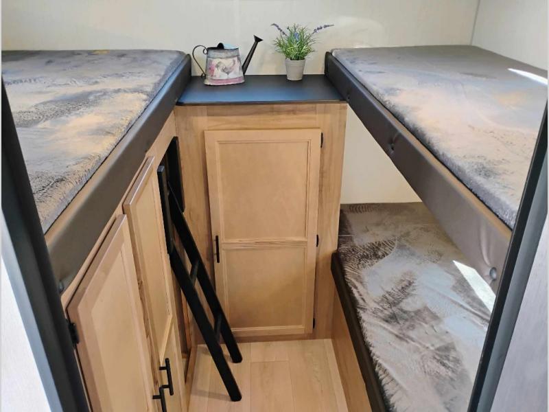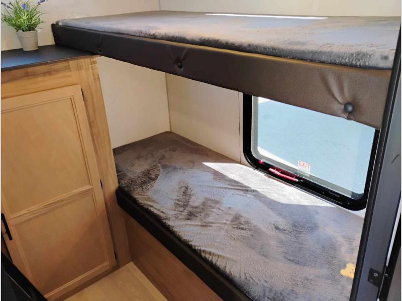 Your larger family will love spending weekends away with this Cherokee Grey Wolf Black Label travel trailer as their home away from home. This model offers lots of sleeping space with three bunk beds in the rear private bunkhouse. In the front, there is a master suite with wardrobes and nightstands on either side of the RV king bed, and it even has private access to the dual-entry bath. The two entry doors will make accessing the trailer easy for everyone, and you will appreciate the abundant storage throughout this unit including large overhead cabinets, an oversized pantry, and numerous outside storage compartments for all of your outdoor gear. You also even have an outside bar & grill!
