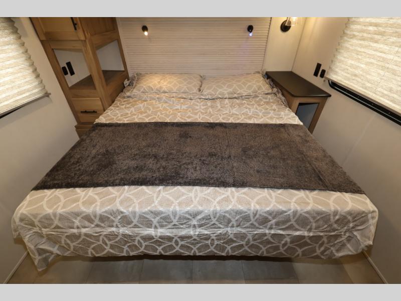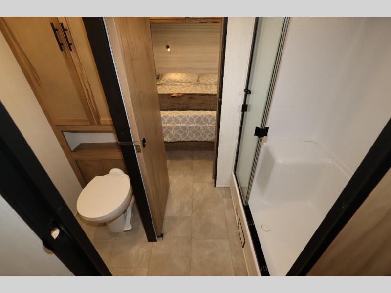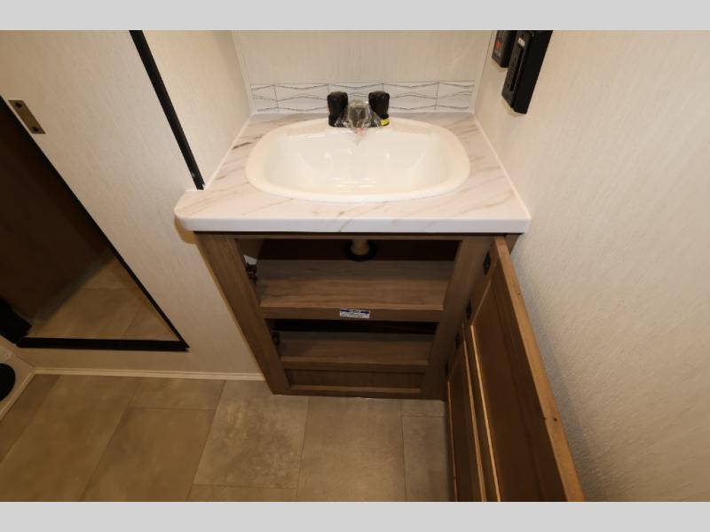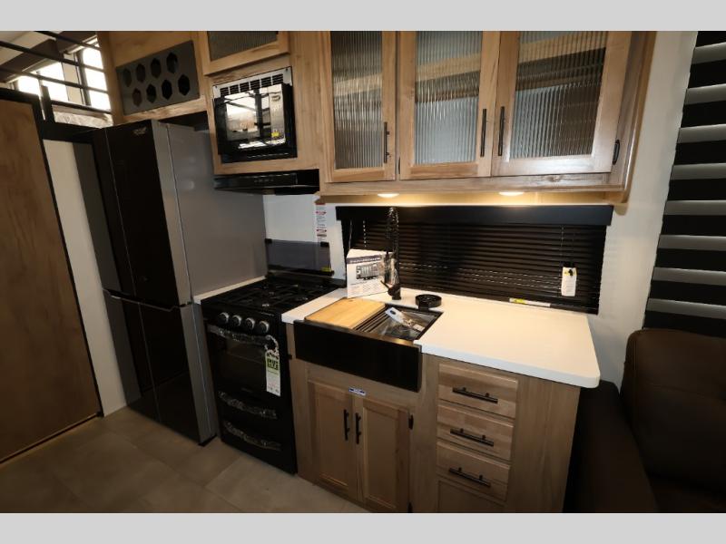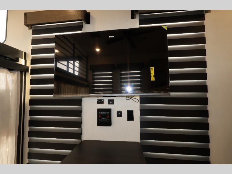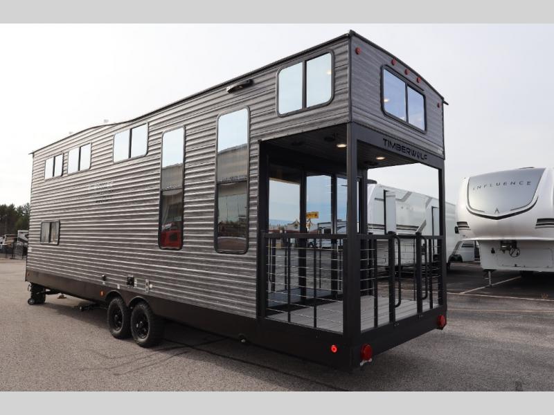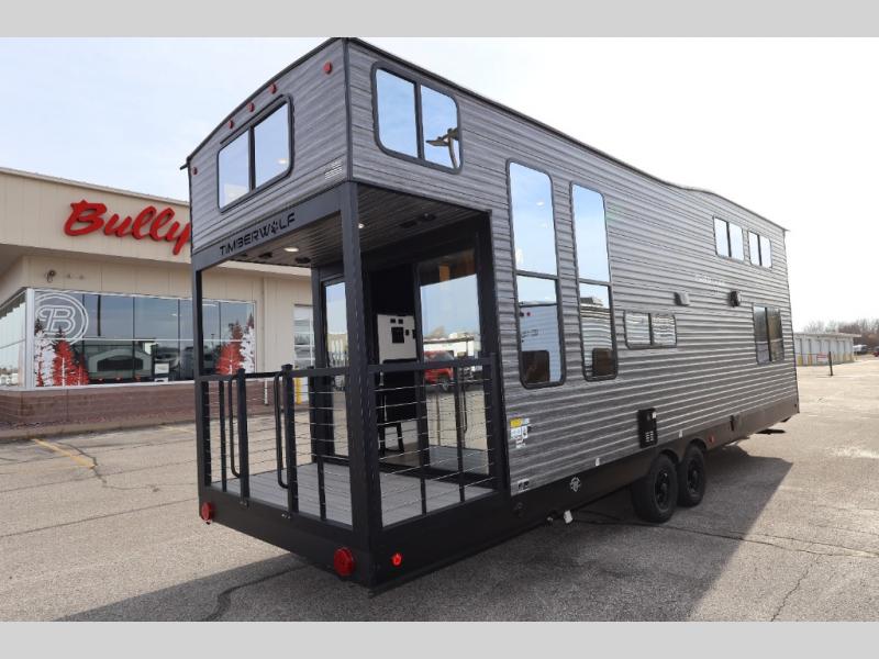 Enjoy comforts of home wherever you decide to roam in a Timberwolf destination trailer by Forest River. The seamless roofing membrane with heat reflectivity and power gear frame technology provide a durable foundation to your RV. You will also appreciate the exclusive solar thermo controlled reflective tinted safety glass windows, tire pressure monitors, and an on-demand tankless water heater to make extended stays easier than ever. Inside, the night shades will provide your crew with privacy, while the LED lights illuminate your space. There are also seamless countertops, along with a premium bedding ensemble and comforter, USB charging stations, a supersized central A/C unit, and many more comforts!