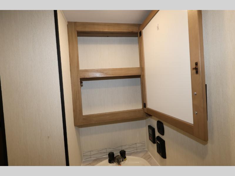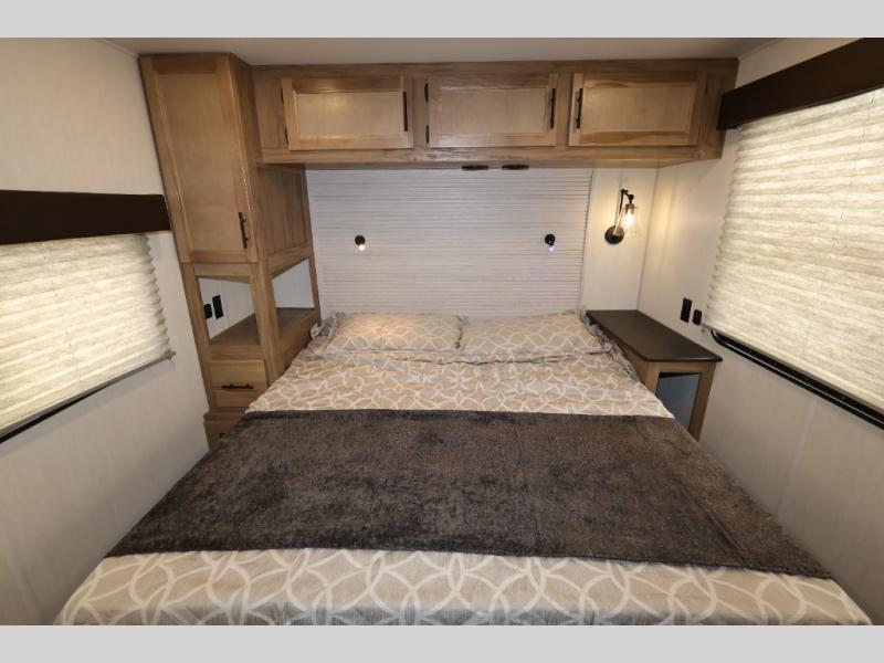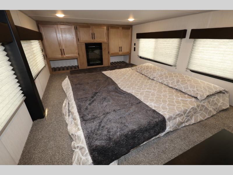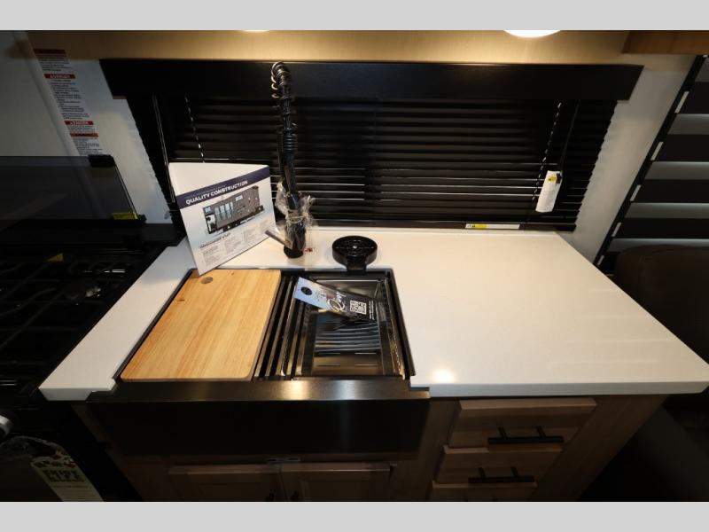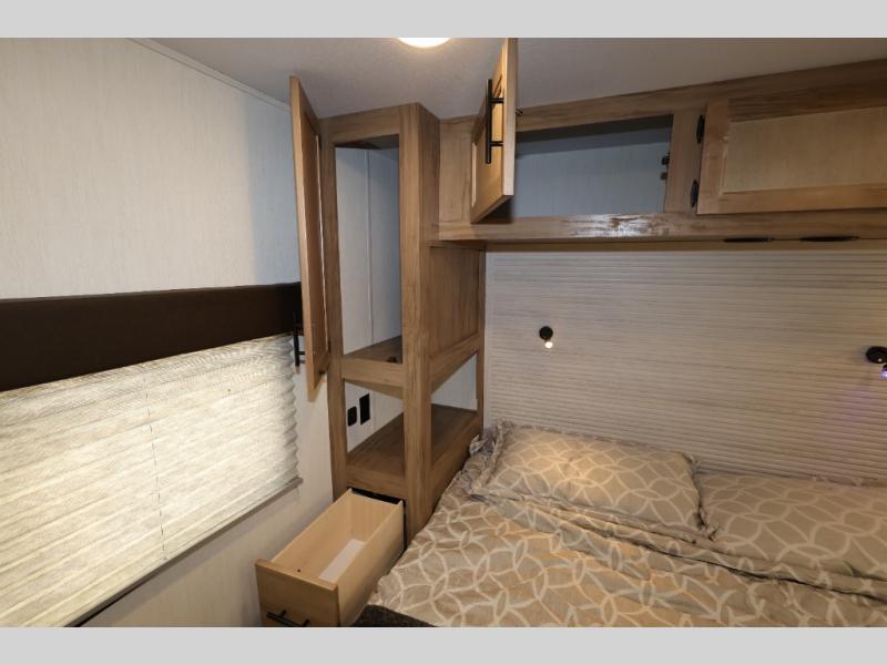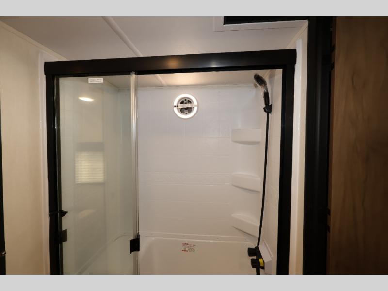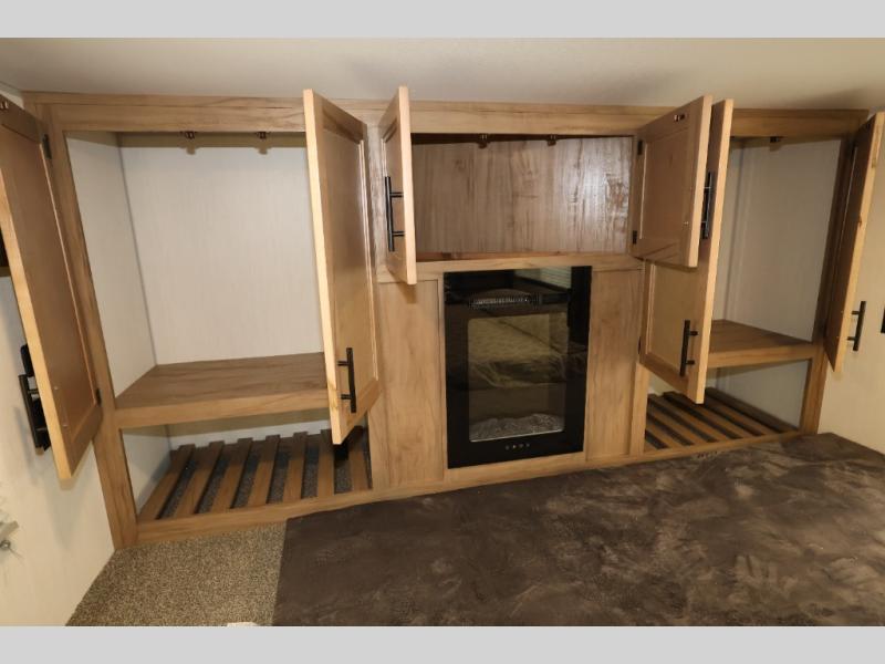 Enjoy comforts of home wherever you decide to roam in a Timberwolf destination trailer by Forest River. The seamless roofing membrane with heat reflectivity and power gear frame technology provide a durable foundation to your RV. You will also appreciate the exclusive solar thermo controlled reflective tinted safety glass windows, tire pressure monitors, and an on-demand tankless water heater to make extended stays easier than ever. Inside, the night shades will provide your crew with privacy, while the LED lights illuminate your space. There are also seamless countertops, along with a premium bedding ensemble and comforter, USB charging stations, a supersized central A/C unit, and many more comforts!