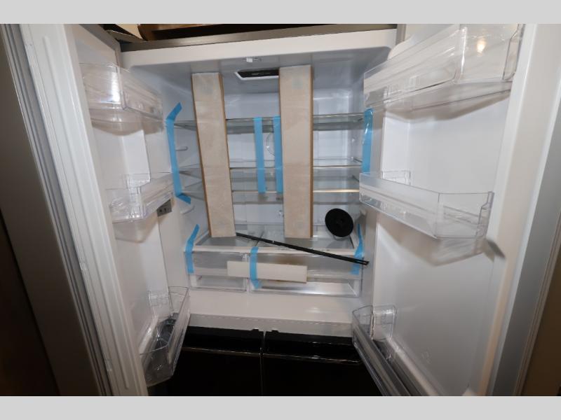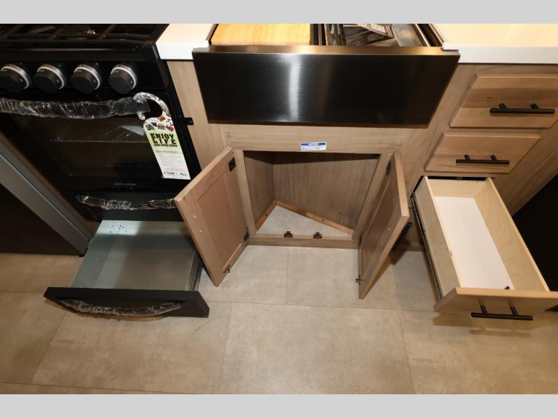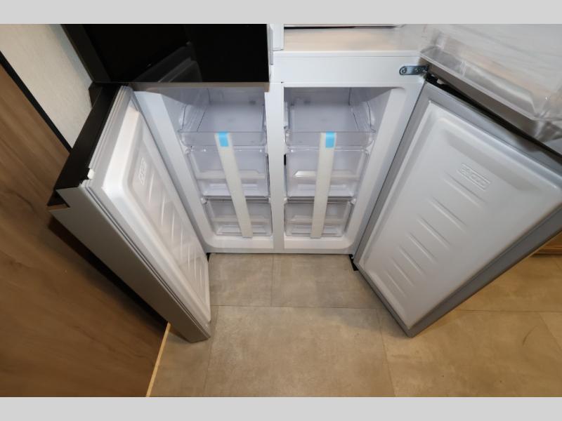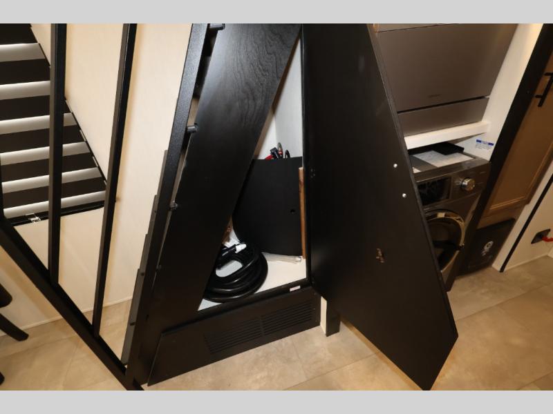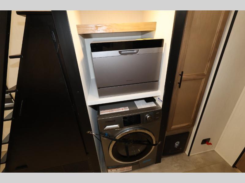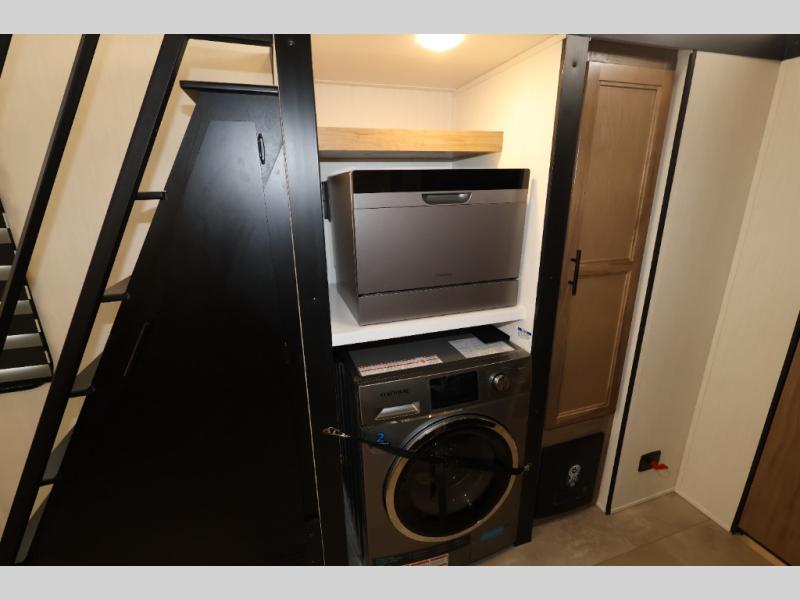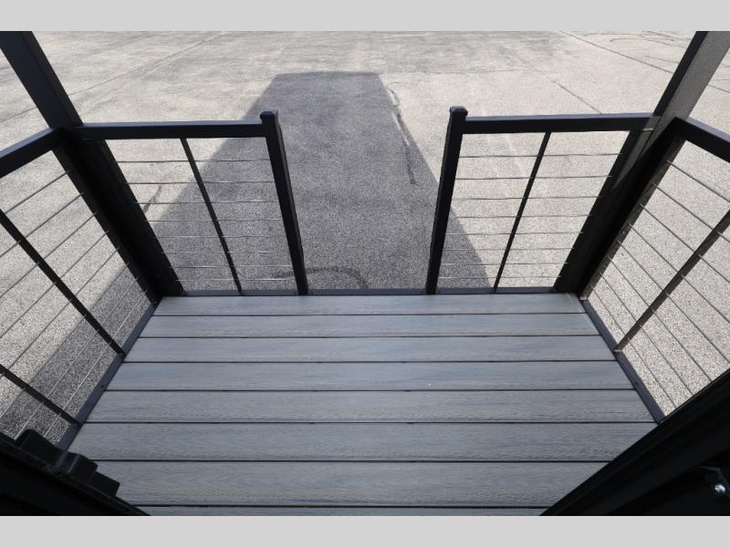 This model is similar to 16ML but larger! A bigger bathroom, king bed in the lower master, and a queen bed plus a twin bunk mat in the front loft. There is an 18 cu. ft. refrigerator so you can stock up for a week long vacation, a hide-a-bed sofa that can transform into added sleeping for guests, and a high top table with two stools to dine at. A ladder allows access into the upper front loft that is over the covered patio. The bathroom below is split with a shower on one side, and a private toilet area and sink opposite. And the view is amazing from just about anywhere inside.