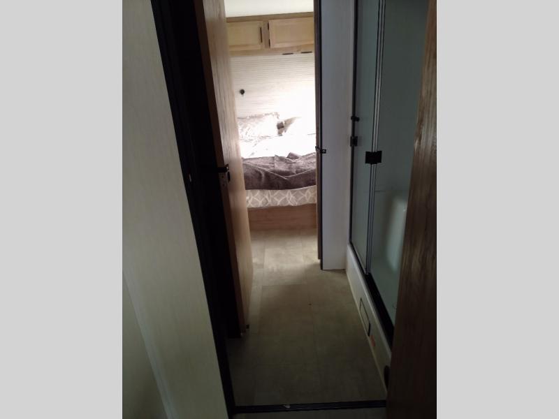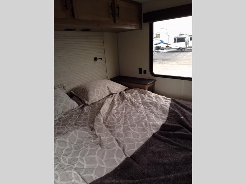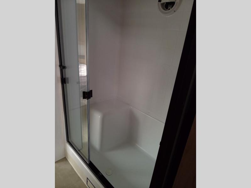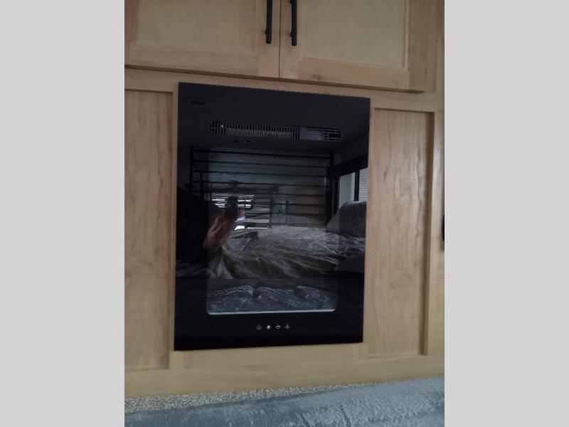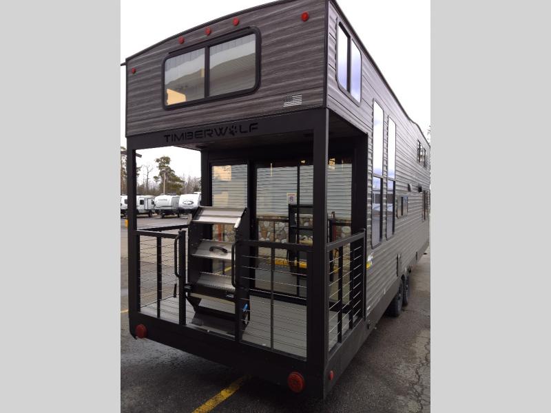 Enjoy comforts of home wherever you decide to roam in a Timberwolf destination trailer by Forest River. The seamless roofing membrane with heat reflectivity and power gear frame technology provide a durable foundation to your RV. You will also appreciate the exclusive solar thermo controlled reflective tinted safety glass windows, tire pressure monitors, and an on-demand tankless water heater to make extended stays easier than ever. Inside, the night shades will provide your crew with privacy, while the LED lights illuminate your space. There are also seamless countertops, along with a premium bedding ensemble and comforter, USB charging stations, a supersized central A/C unit, and many more comforts!
