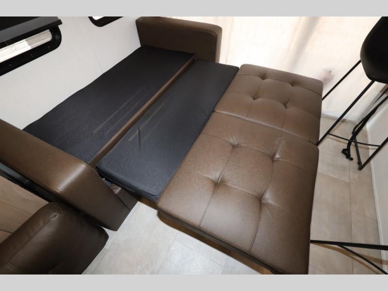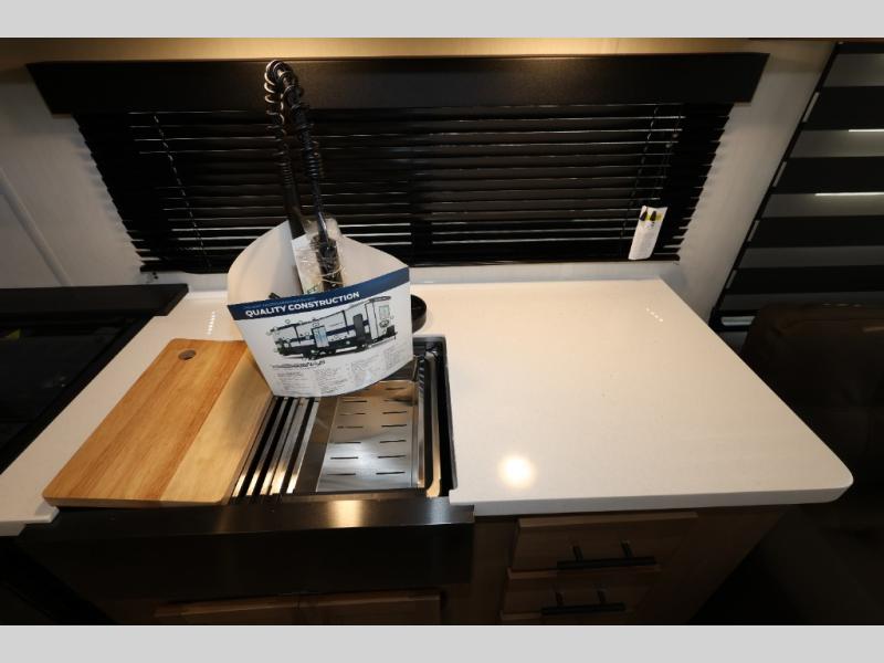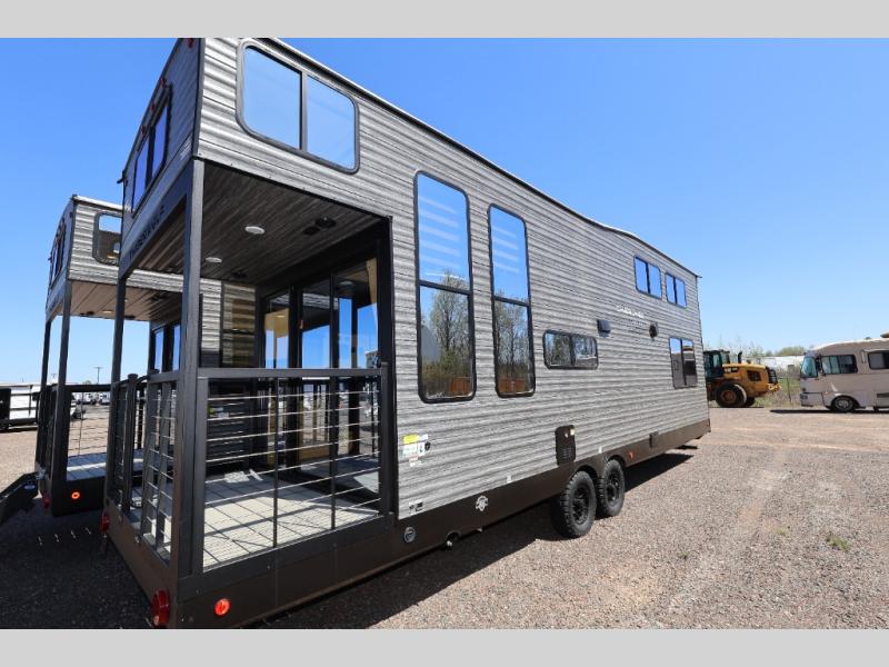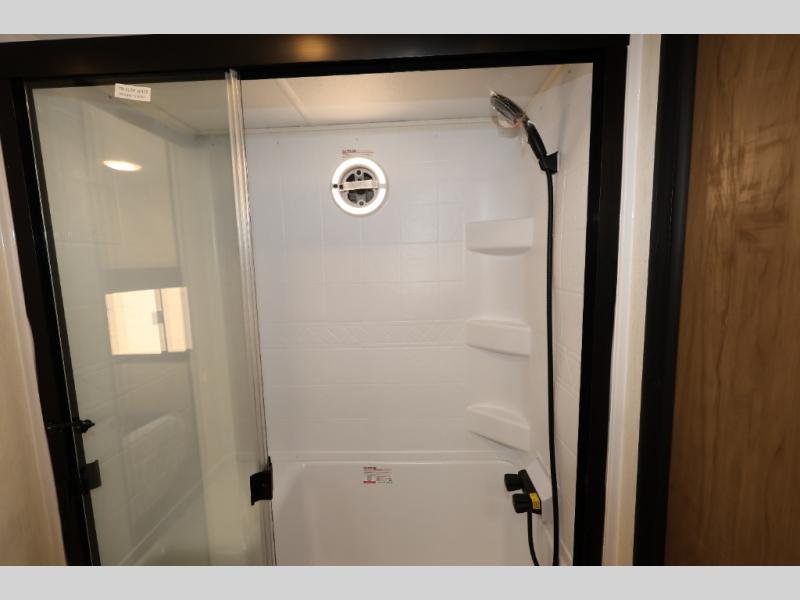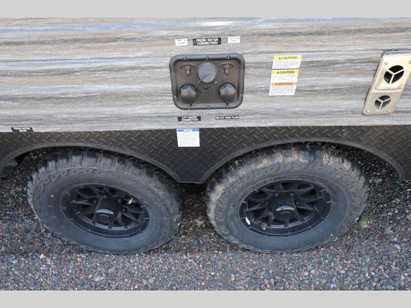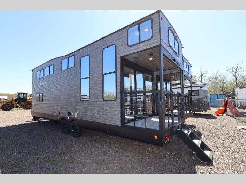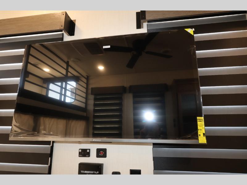 Enjoy comforts of home wherever you decide to roam in a Timberwolf destination trailer by Forest River. The seamless roofing membrane with heat reflectivity and power gear frame technology provide a durable foundation to your RV. You will also appreciate the exclusive solar thermo controlled reflective tinted safety glass windows, tire pressure monitors, and an on-demand tankless water heater to make extended stays easier than ever. Inside, the night shades will provide your crew with privacy, while the LED lights illuminate your space. There are also seamless countertops, along with a premium bedding ensemble and comforter, USB charging stations, a supersized central A/C unit, and many more comforts!