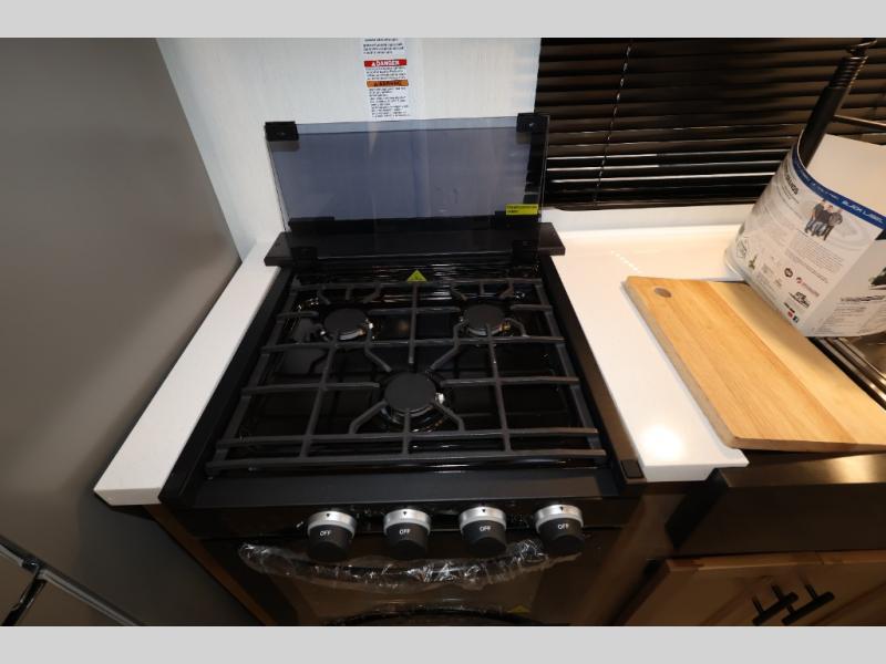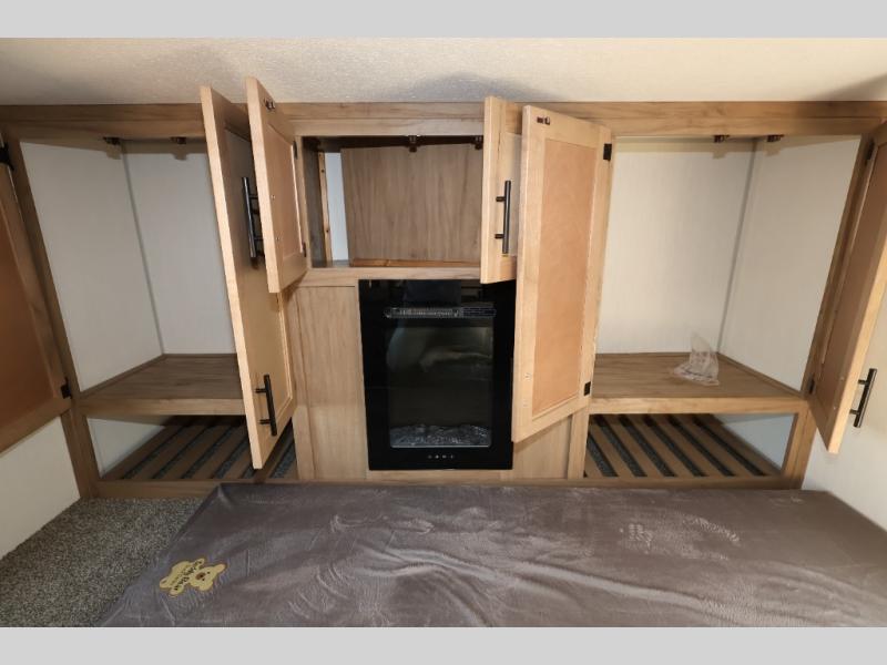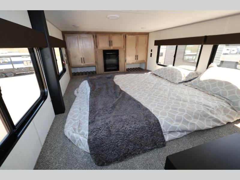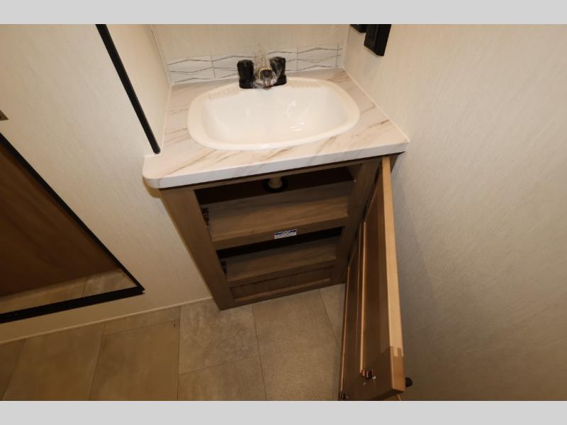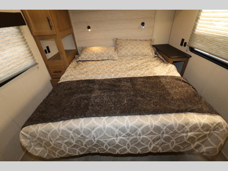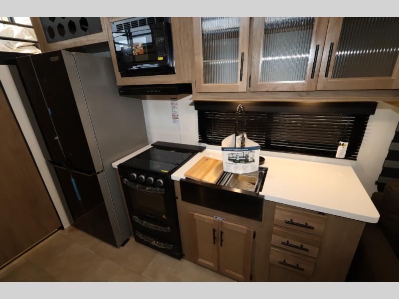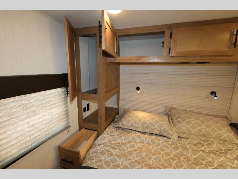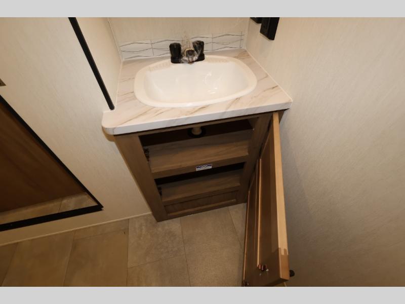 Enjoy comforts of home wherever you decide to roam in a Timberwolf destination trailer by Forest River. The seamless roofing membrane with heat reflectivity and power gear frame technology provide a durable foundation to your RV. You will also appreciate the exclusive solar thermo controlled reflective tinted safety glass windows, tire pressure monitors, and an on-demand tankless water heater to make extended stays easier than ever. Inside, the night shades will provide your crew with privacy, while the LED lights illuminate your space. There are also seamless countertops, along with a premium bedding ensemble and comforter, USB charging stations, a supersized central A/C unit, and many more comforts!