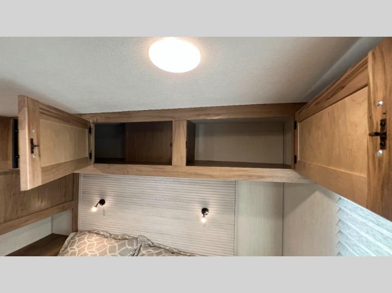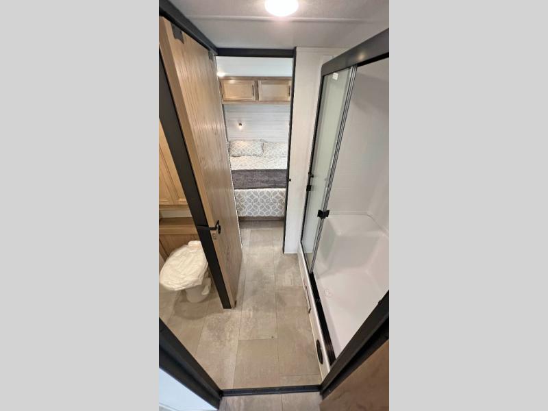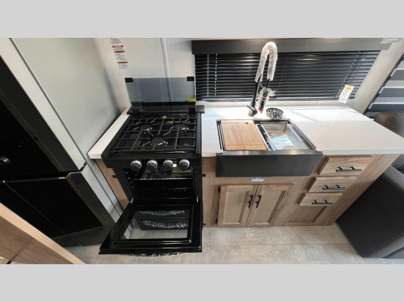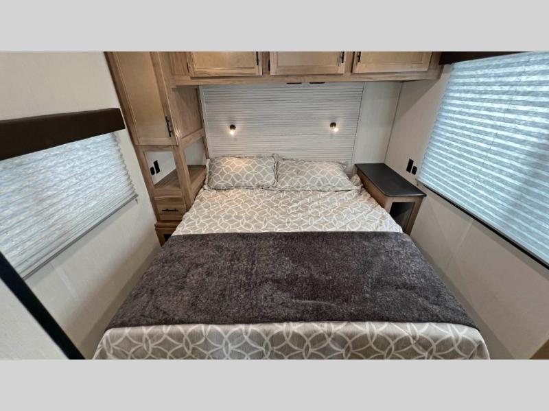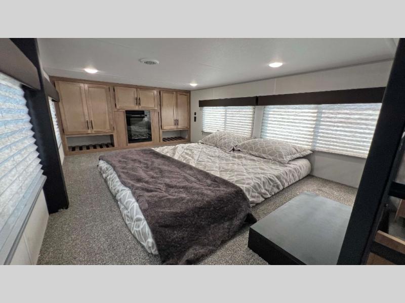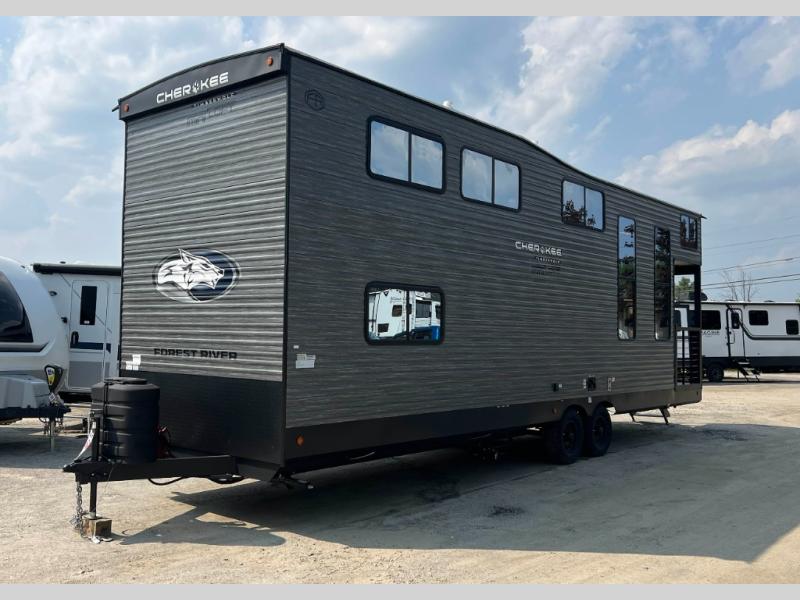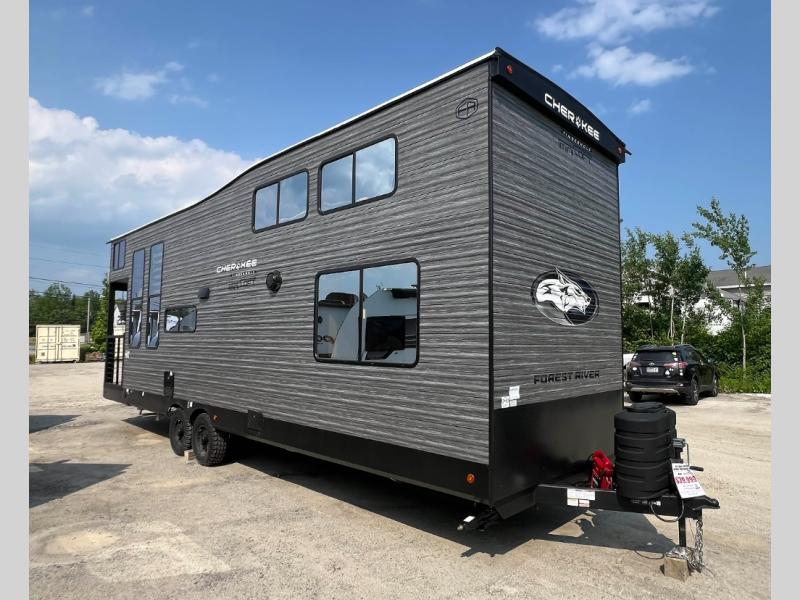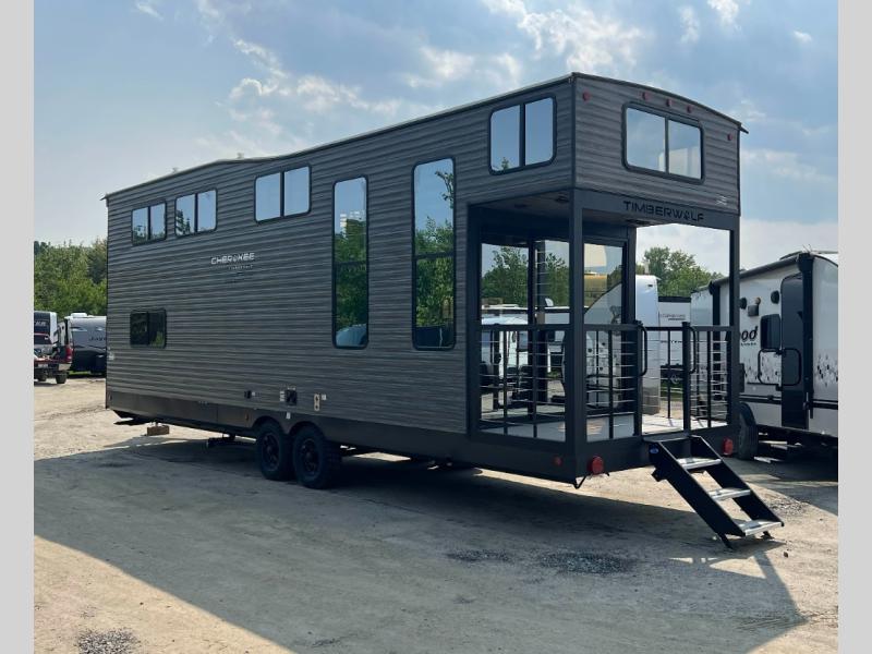Enjoy comforts of home wherever you decide to roam in a Cherokee Timberwolf destination trailer by Forest River. The seamless roofing membrane with heat reflectivity provide a durable foundation to your RV. You will also appreciate the exclusive solar thermo controlled reflective tinted safety glass windows and an on-demand tankless water heater to make extended stays easier than ever. Inside, the night shades will provide your crew with privacy. There are also seamless countertops, along with a premium bedding ensemble and comforter, USB charging stations, a supersized central A/C unit, and many more comforts!