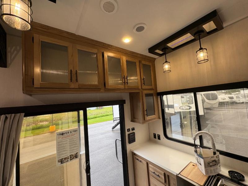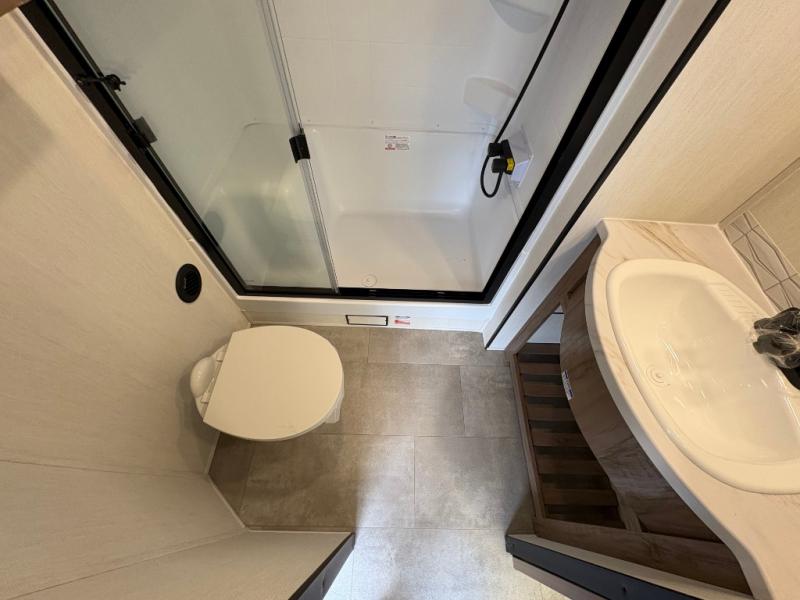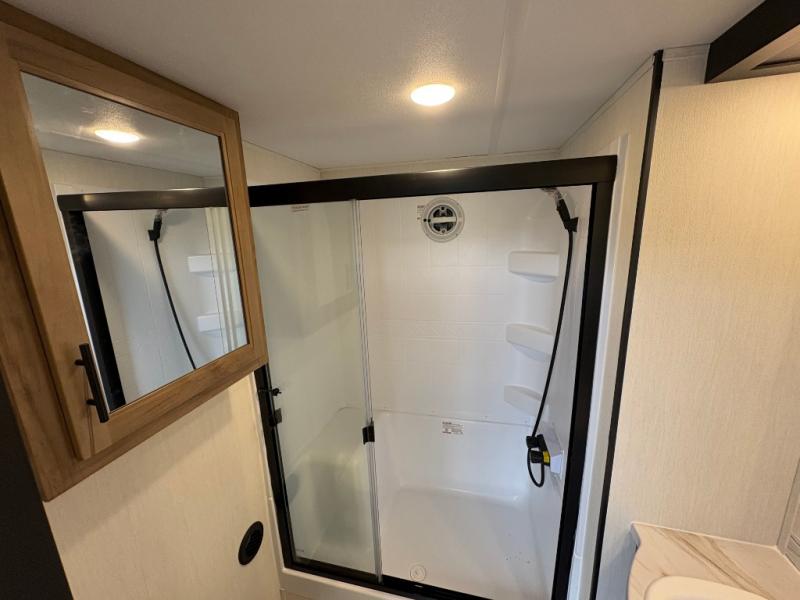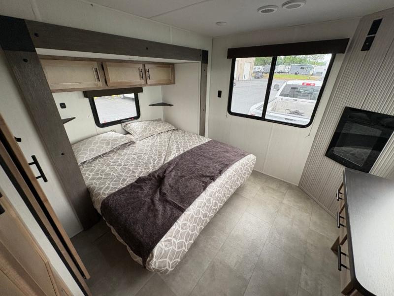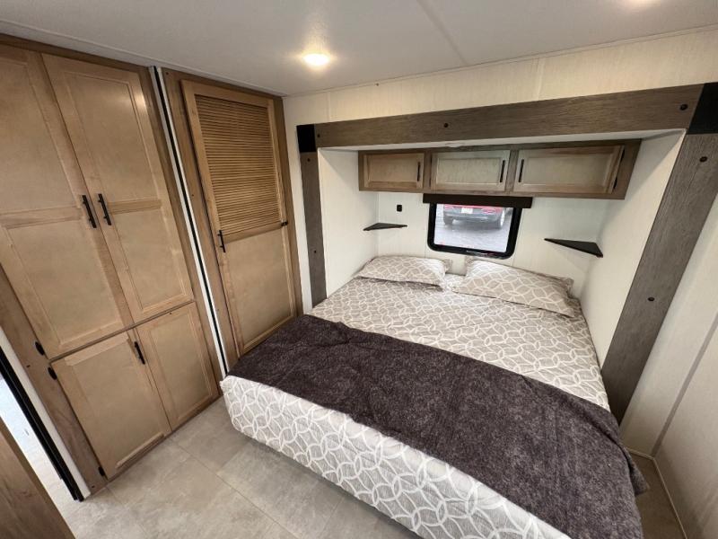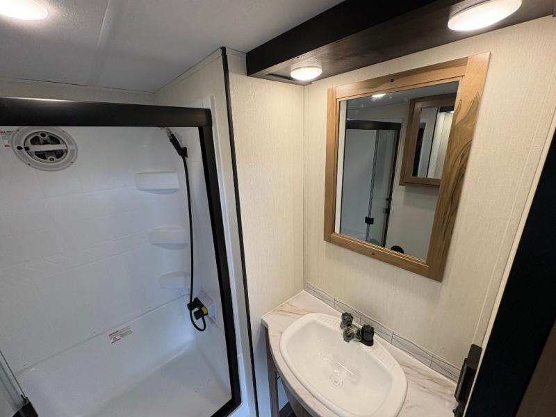 Enjoy comforts of home wherever you decide to roam in a Timberwolf destination trailer by Forest River. The seamless roofing membrane with heat reflectivity and power gear frame technology provide a durable foundation to your RV. You will also appreciate the exclusive solar thermo controlled reflective tinted safety glass windows, tire pressure monitors, and an on-demand tankless water heater to make extended stays easier than ever. Inside, the night shades will provide your crew with privacy, while the LED lights illuminate your space. There are seamless countertops, along with a premium bedding ensemble and comforter, USB charging stations, a supersized central A/C unit, and many more comforts!