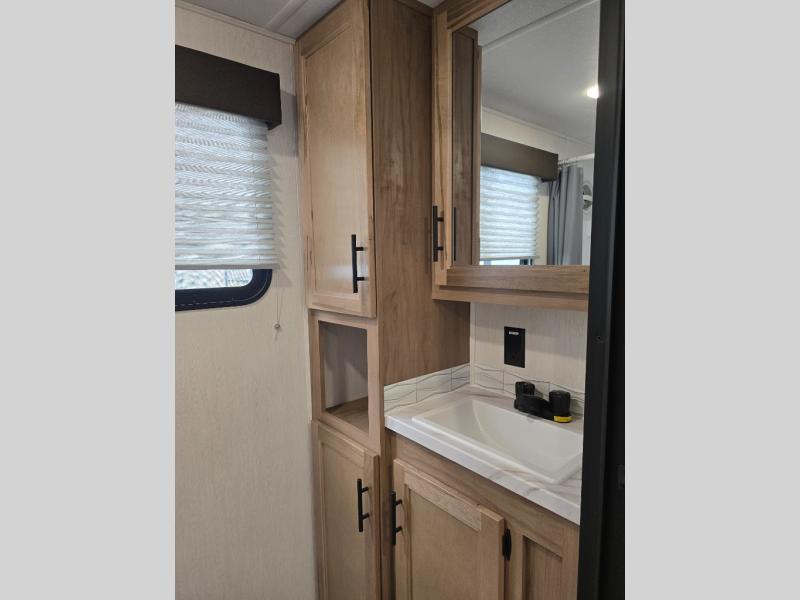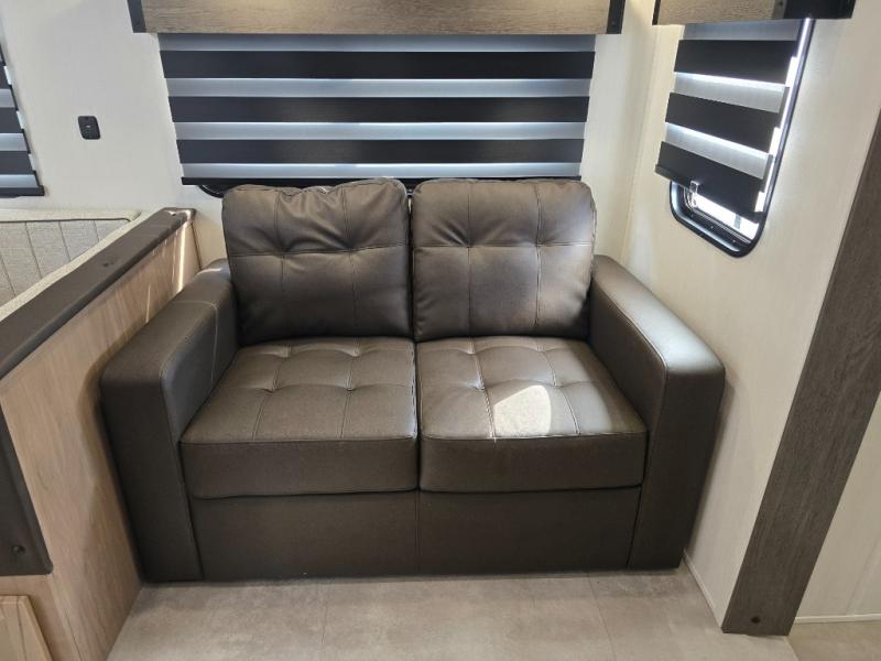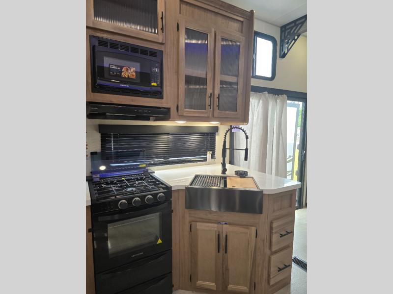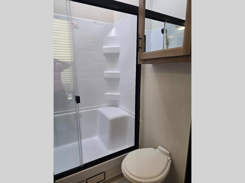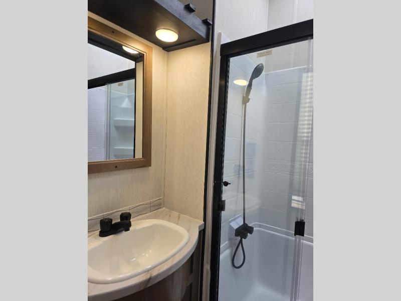 Enjoy comforts of home wherever you decide to roam in a Timberwolf destination trailer by Forest River. The seamless roofing membrane with heat reflectivity and power gear frame technology provide a durable foundation to your RV. You will also appreciate the exclusive solar thermo controlled reflective tinted safety glass windows, tire pressure monitors, and an on-demand tankless water heater to make extended stays easier than ever. Inside, the night shades will provide your crew with privacy, while the LED lights illuminate your space. There are also seamless countertops, along with a premium bedding ensemble and comforter, USB charging stations, a supersized central A/C unit, and many more comforts!