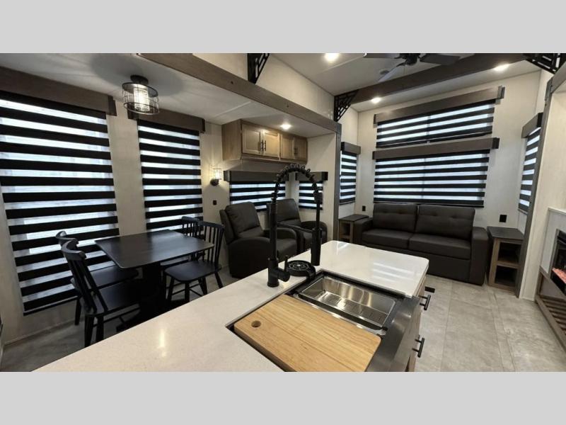 Enjoy comforts of home wherever you decide to roam in a Timberwolf destination trailer by Forest River. The seamless roofing membrane with heat reflectivity and power gear frame technology provide a durable foundation to your RV. You will also appreciate the exclusive solar thermo controlled reflective tinted safety glass windows, tire pressure monitors, and an on-demand tankless water heater to make extended stays easier than ever. Inside, the night shades will provide your crew with privacy, while the LED lights illuminate your space. There are also seamless countertops, along with a premium bedding ensemble and comforter, USB charging stations, a supersized central A/C unit, and many more comforts!