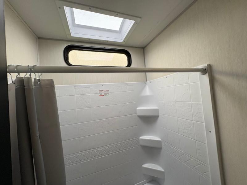 Enjoy comforts of home wherever you decide to roam in a Timberwolf destination trailer by Forest River. The seamless roofing membrane with heat reflectivity and power gear frame technology provide a durable foundation to your RV. You will also appreciate the exclusive solar thermo controlled reflective tinted safety glass windows, tire pressure monitors, and an on-demand tankless water heater to make extended stays easier than ever. Inside, the night shades will provide your crew with privacy, while the LED lights illuminate your space. There are seamless countertops, along with a premium bedding ensemble and comforter, USB charging stations, a supersized central A/C unit, and many more comforts!