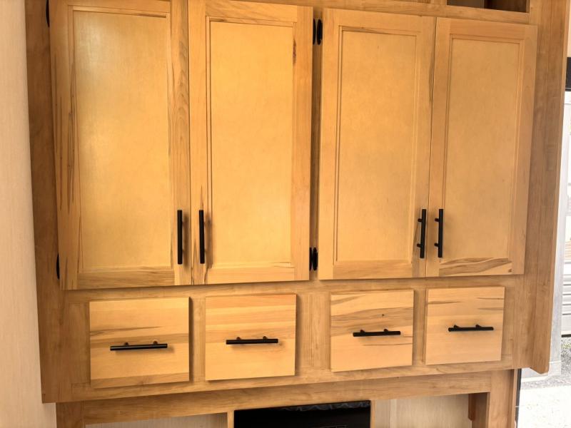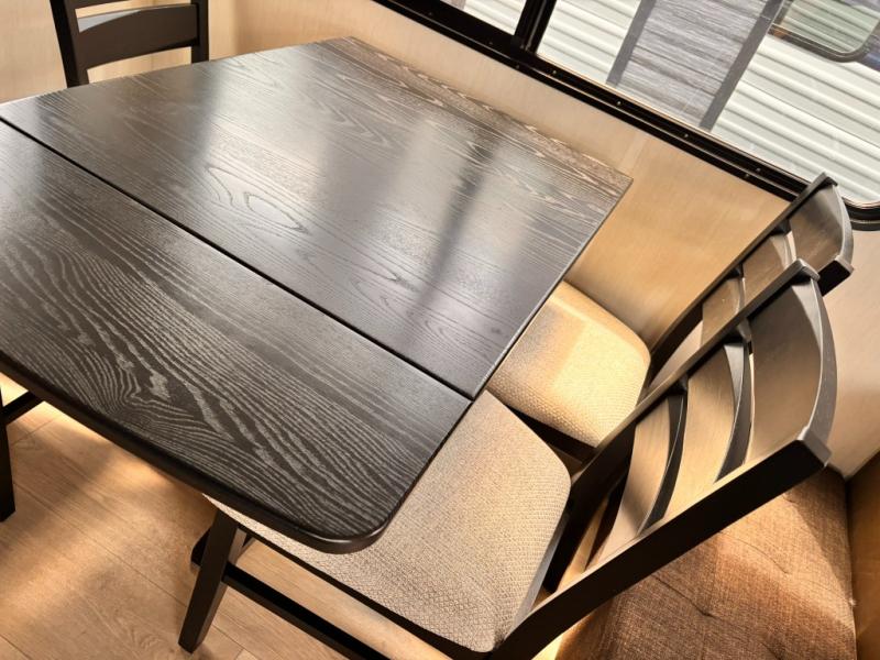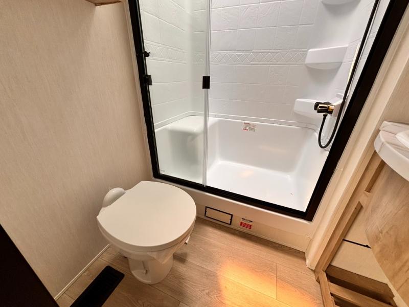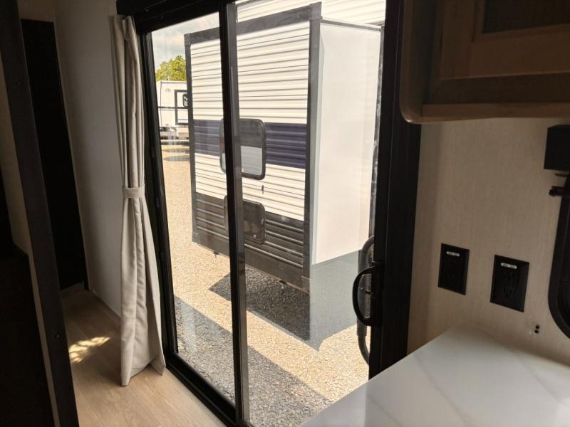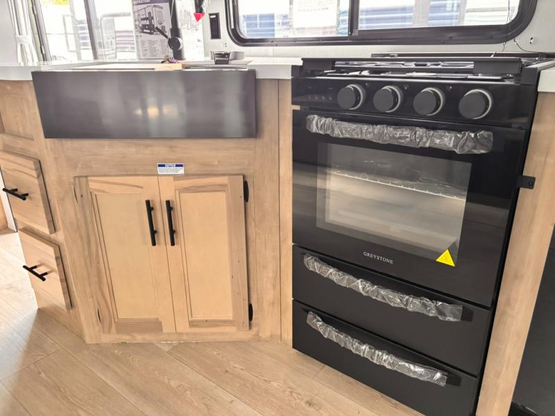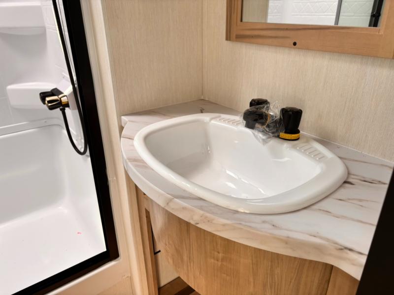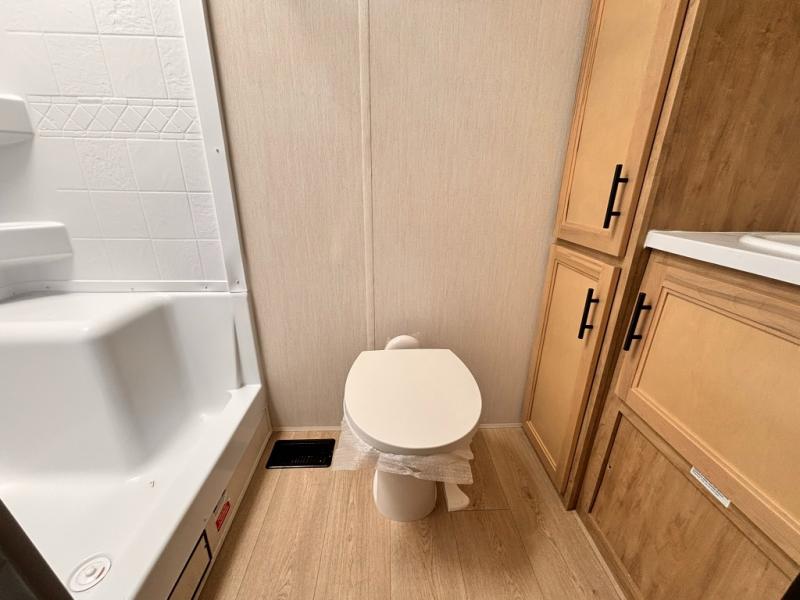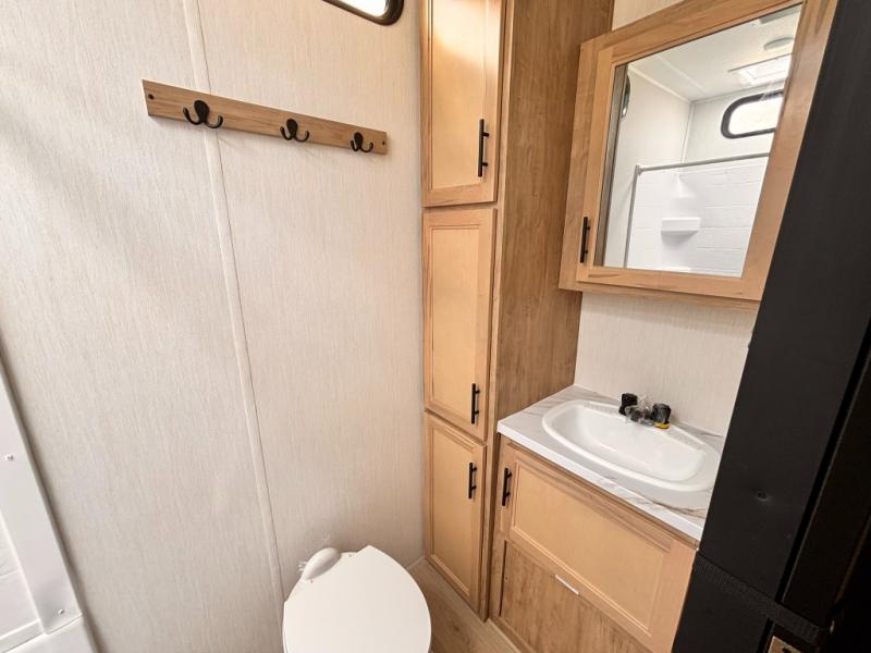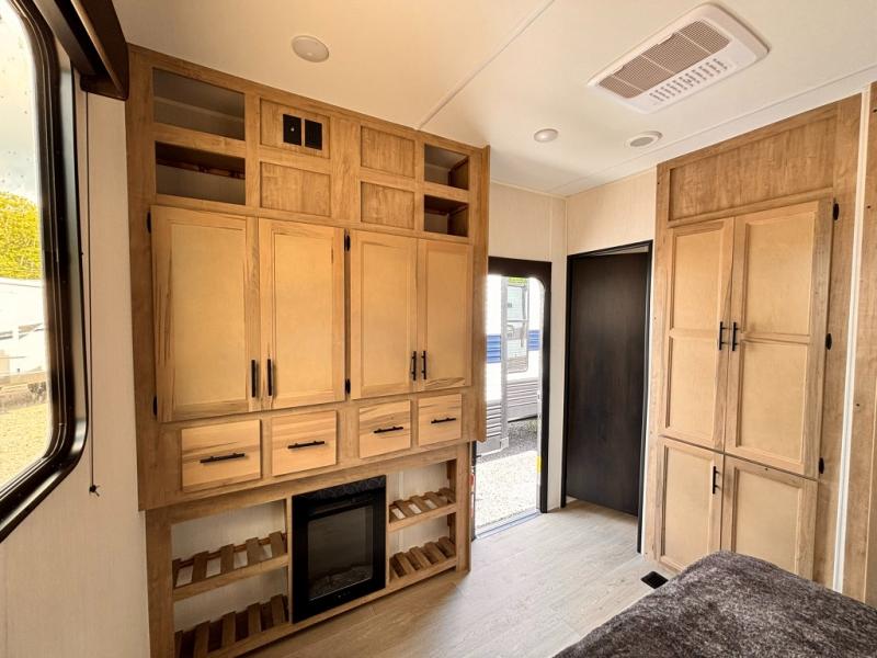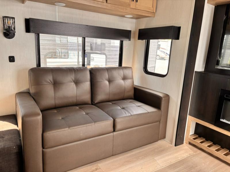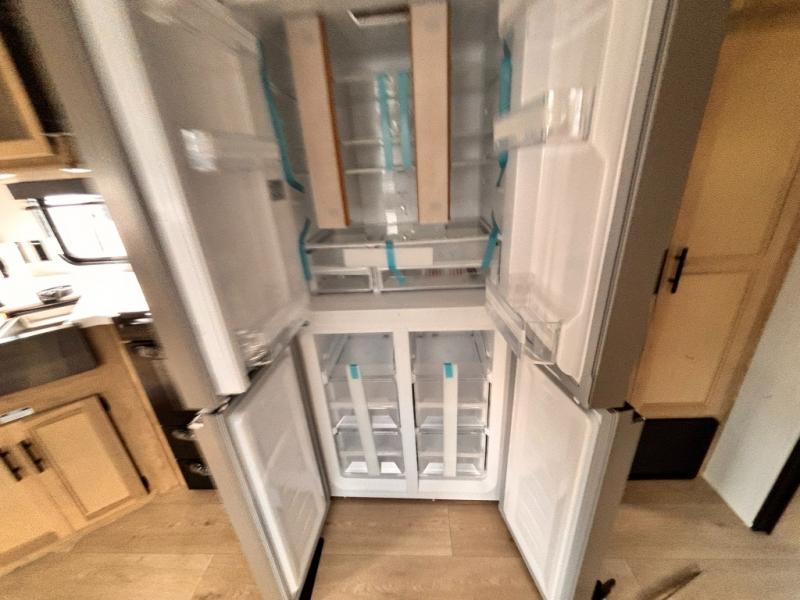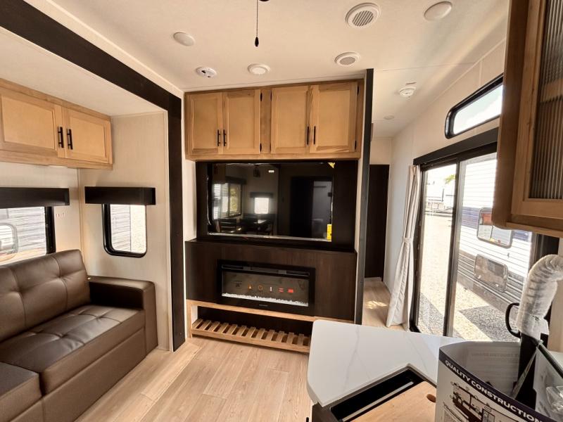 Spacious and comfortable is how you will describe this destination travel trailer featuring triple slides, two full baths, and a spacious combined kitchen and living area thanks to the large slide here featuring a free standing dinette and sofa. The kitchen includes everything you need to comfortably cook while you are away, and allows you to make meals for your family just like at home. There is a large pantry where you can keep plenty of snacks and dry goods for your trip. In the rear of the coach, there is a private bedroom featuring a queen bed slide for added space, comfortable sleeping, as well as ample storage between a dresser and wardrobe for your clothing. In the very back, a master suite bath featuring a vanity with sink, a shower with a seat, and linen storage for your towels and toiletries. This front bedroom also features a king bed slide!