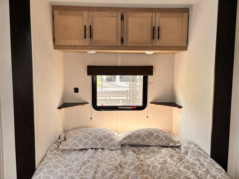 Enjoy comforts of home wherever you decide to roam in a Timberwolf destination trailer by Forest River. The seamless roofing membrane with heat reflectivity and power gear frame technology provide a durable foundation to your RV. You will also appreciate the exclusive solar thermo controlled reflective tinted safety glass windows, tire pressure monitors, and an on-demand tankless water heater to make extended stays easier than ever. Inside, the night shades will provide your crew with privacy, while the LED lights illuminate your space. There are seamless countertops, along with a premium bedding ensemble and comforter, USB charging stations, a supersized central A/C unit, and many more comforts!