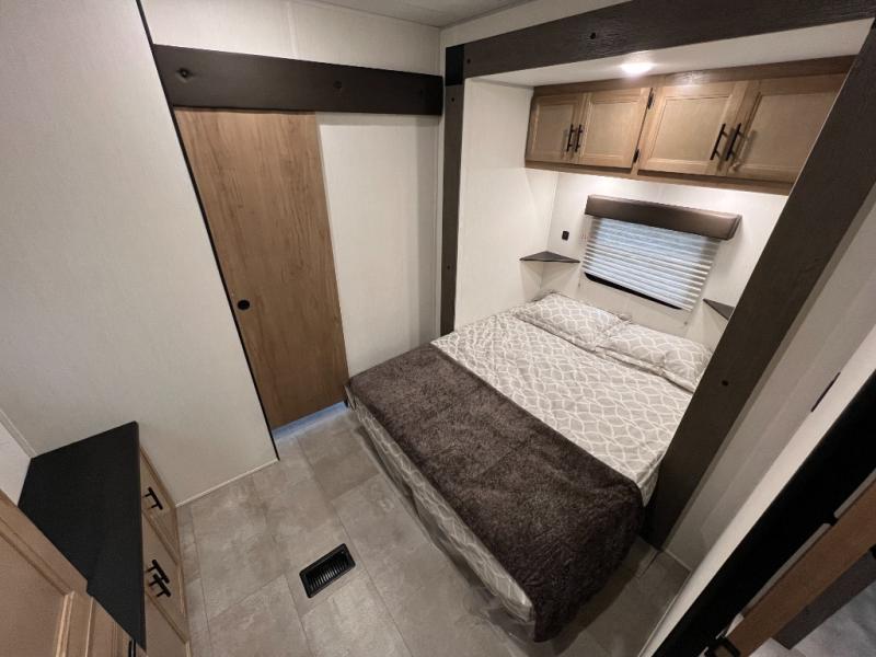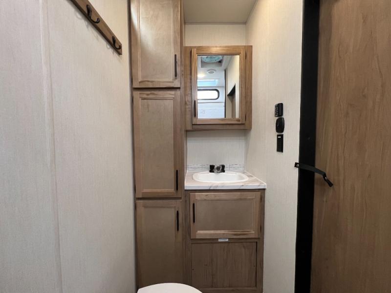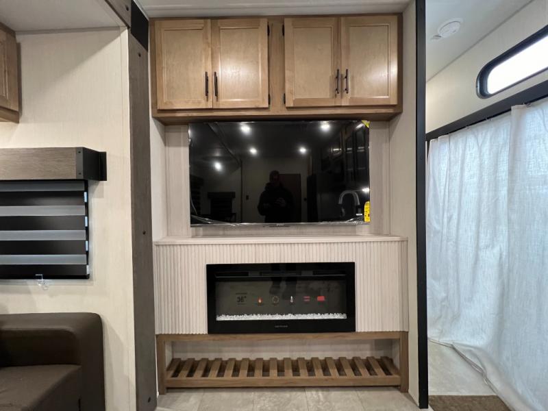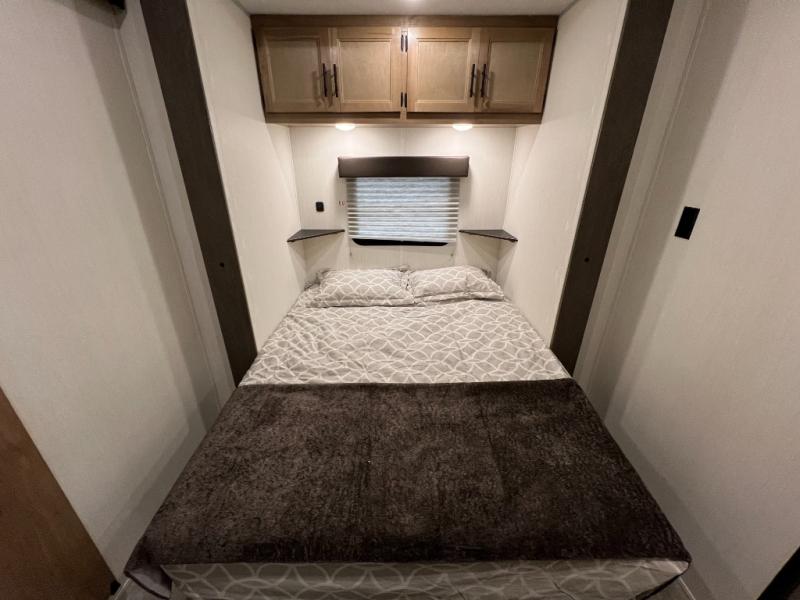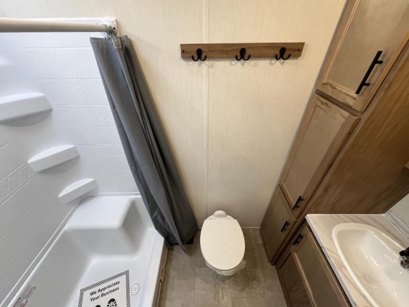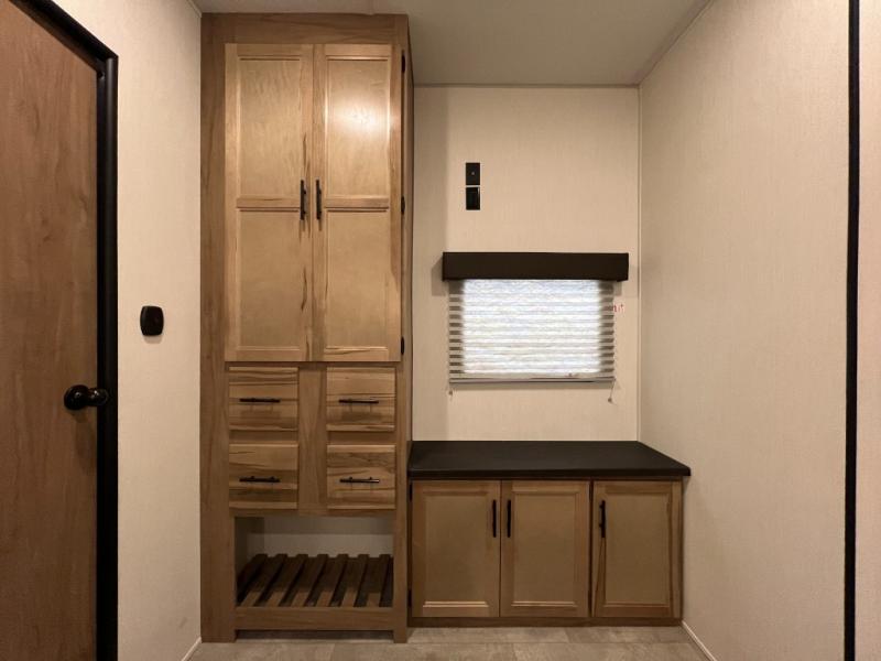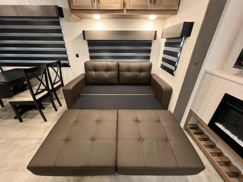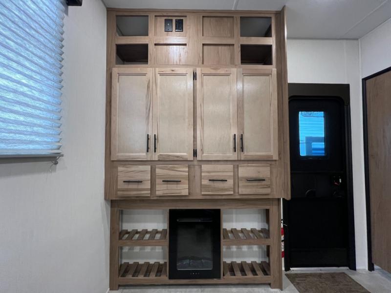 Spacious and comfortable is how you will describe this destination travel trailer featuring triple slides, two full baths, and a spacious combined kitchen and living area thanks to the large slide here featuring a free standing dinette and sofa. The kitchen includes everything you need to comfortably cook while you are away, and allows you to make meals for your family just like at home. There is a large pantry where you can keep plenty of snacks and dry goods for your trip. In the rear of the coach, there is a private bedroom featuring a queen bed slide for added space, comfortable sleeping, as well as ample storage between a dresser and wardrobe for your clothing. In the very back, a master suite bath featuring a vanity with sink, a shower with a seat, and linen storage for your towels and toiletries. This front bedroom also features a king bed slide!