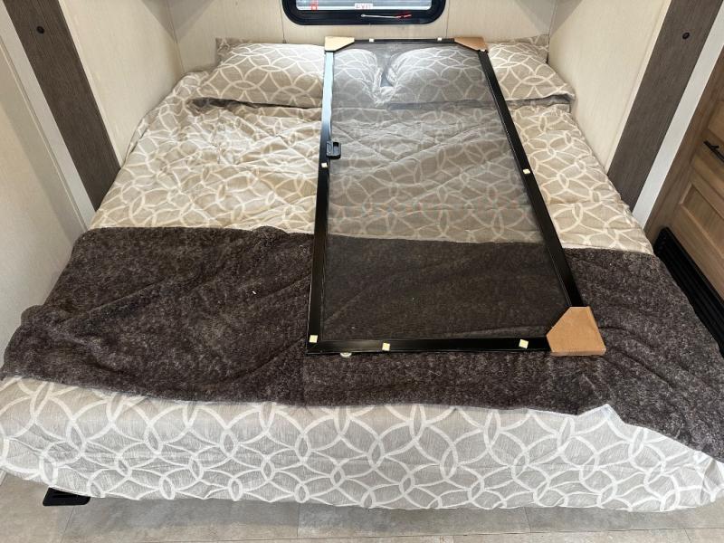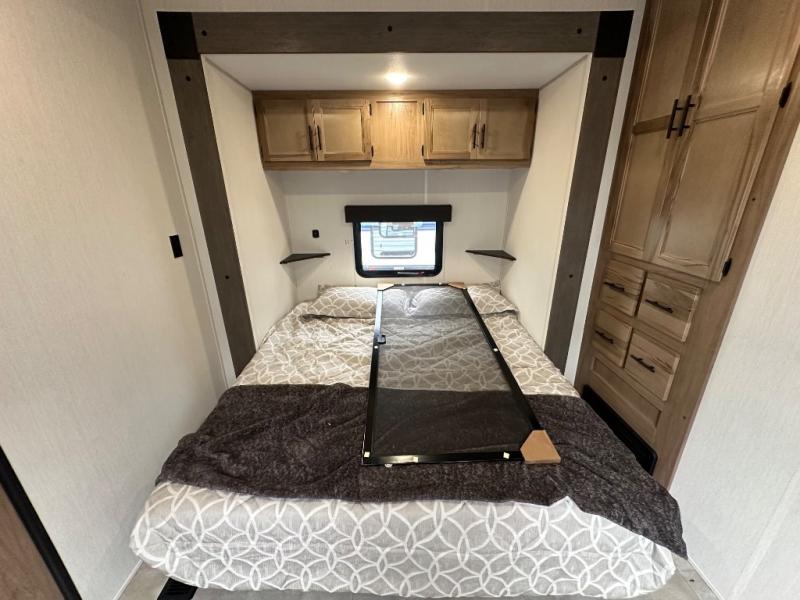 Enjoy comforts of home wherever you decide to roam in a Timberwolf destination trailer by Forest River. The seamless roofing membrane with heat reflectivity and power gear frame technology provide a durable foundation to your RV. You will also appreciate the exclusive solar thermo controlled reflective tinted safety glass windows, tire pressure monitors, and an on-demand tankless water heater to make extended stays easier than ever. Inside, the night shades will provide your crew with privacy, while the LED lights illuminate your space. There are also seamless countertops, along with a premium bedding ensemble and comforter, USB charging stations, a supersized central A/C unit, and many more comforts!