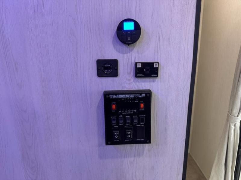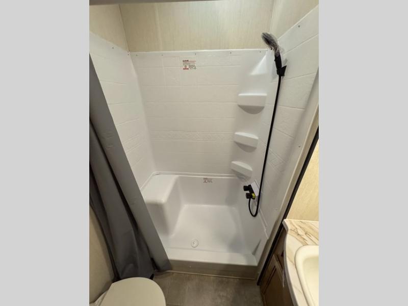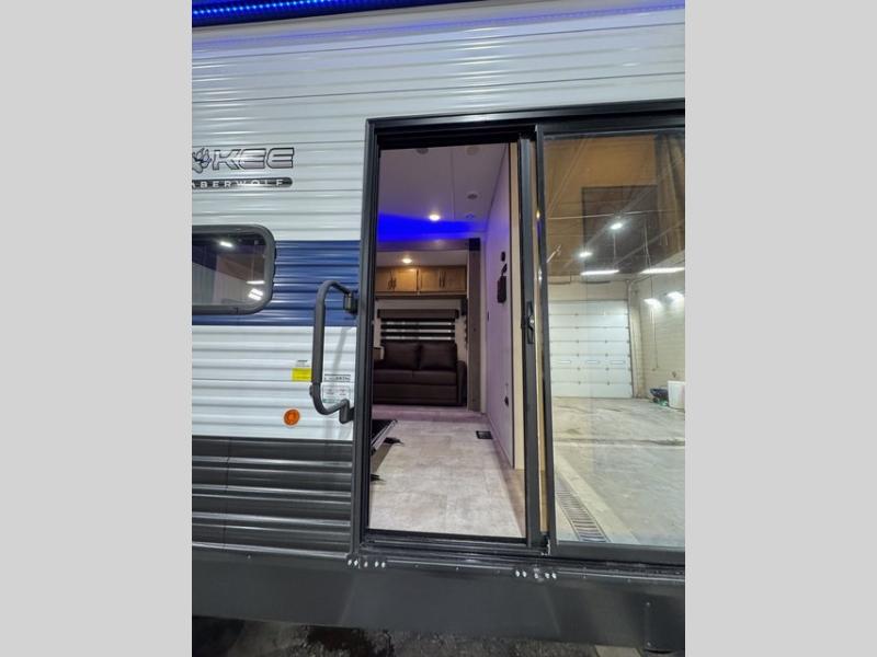 Enjoy comforts of home wherever you decide to roam in a Timberwolf destination trailer by Forest River. The seamless roofing membrane with heat reflectivity and power gear frame technology provide a durable foundation to your RV. You will also appreciate the exclusive solar thermo controlled reflective tinted safety glass windows, tire pressure monitors, and an on-demand tankless water heater to make extended stays easier than ever. Inside, the night shades will provide your crew with privacy, while the LED lights illuminate your space. There are also seamless countertops, along with a premium bedding ensemble and comforter, USB charging stations, a supersized central A/C unit, and many more comforts!