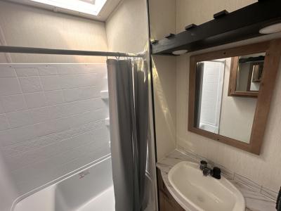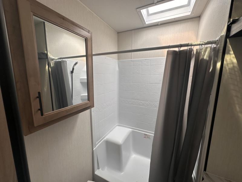 Enjoy comforts of home wherever you decide to roam in a Timberwolf destination trailer by Forest River. The seamless roofing membrane with heat reflectivity and power gear frame technology provide a durable foundation to your RV. You will also appreciate the exclusive solar thermo controlled reflective tinted safety glass windows, tire pressure monitors, and an on-demand tankless water heater to make extended stays easier than ever. Inside, the night shades will provide your crew with privacy, while the LED lights illuminate your space. There are also seamless countertops, along with a premium bedding ensemble and comforter, USB charging stations, a supersized central A/C unit, and many more comforts!