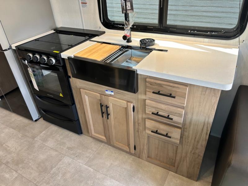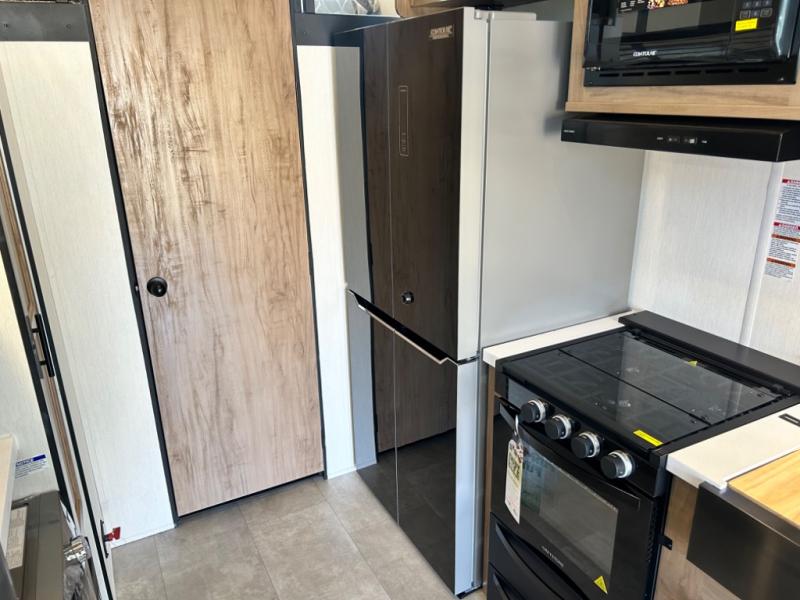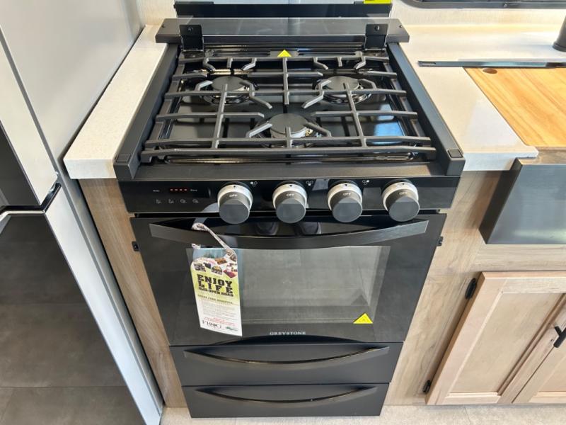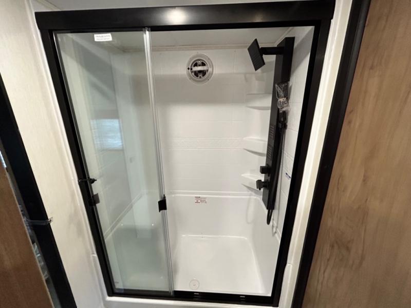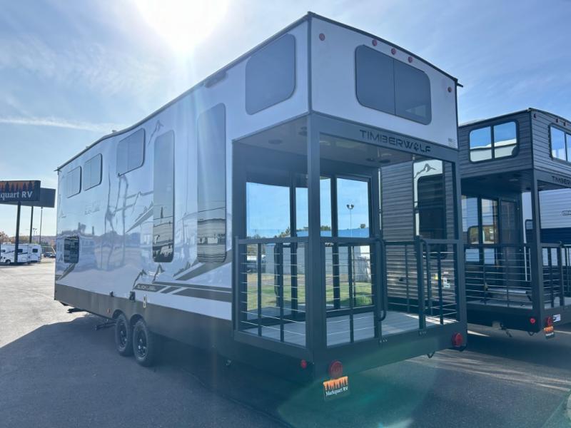 Enjoy comforts of home wherever you decide to roam in a Cherokee Timberwolf Black Label destination trailer by Forest River. The seamless roofing membrane with heat reflectivity and power gear frame technology provide a durable foundation to your RV. You will also appreciate the exclusive solar thermo controlled reflective tinted safety glass windows, tire pressure monitors, and an on-demand tankless water heater to make extended stays easier than ever. Inside, the night shades will provide your crew with privacy, while the LED lights illuminate your space. There are also seamless countertops, along with a premium bedding ensemble and comforter, USB charging stations, and a supersized central A/C unit. The Black Label Package features hung fiberglass gel coat sided walls, Thermo-Foil Arctic insulation, and a frameless window package. There are also upgraded reading lights, designer cushion fabric, and upgraded solid surface countertops to have you feeling right at home!
