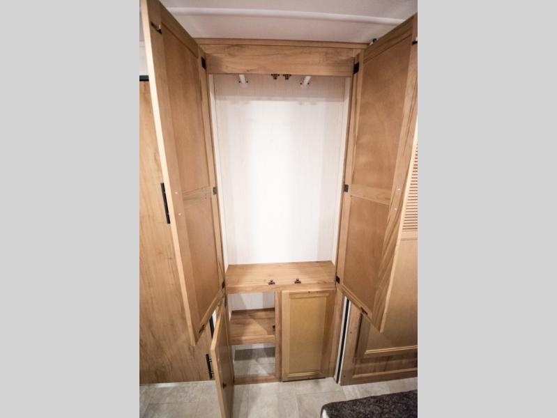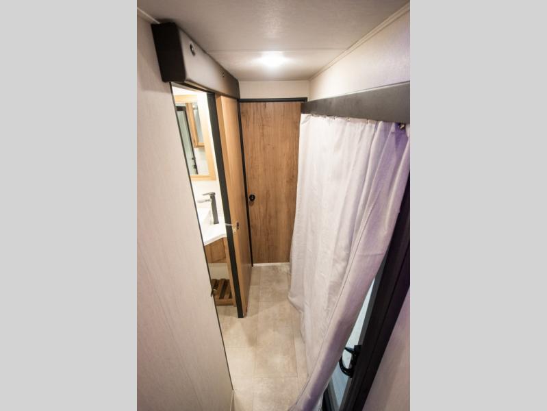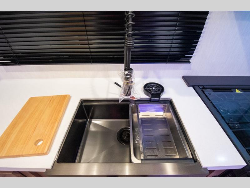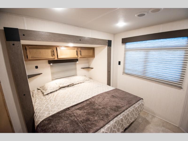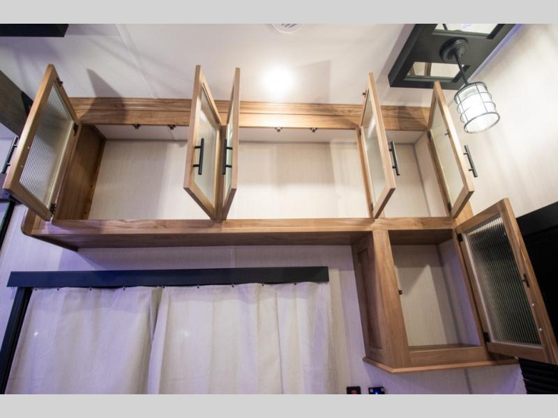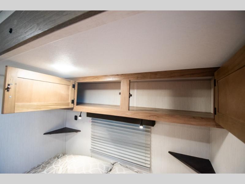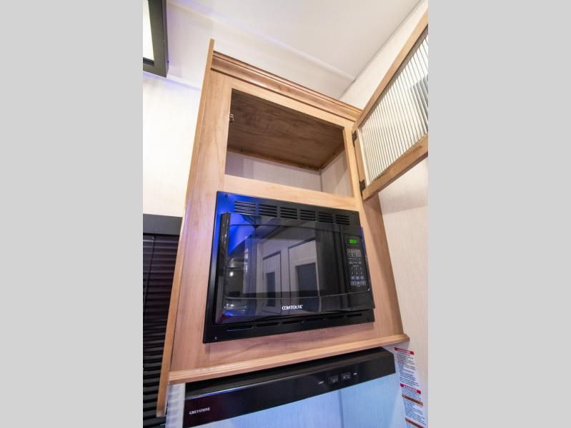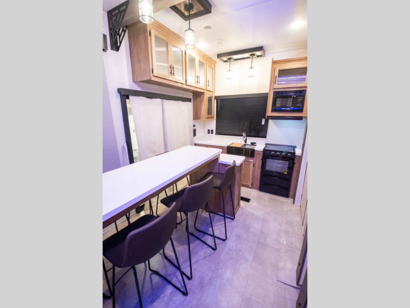 Enjoy comforts of home wherever you decide to roam in a Cherokee Timberwolf Black Label destination trailer by Forest River. The seamless roofing membrane with heat reflectivity and power gear frame technology provide a durable foundation to your RV. You will also appreciate the exclusive solar thermo controlled reflective tinted safety glass windows, tire pressure monitors, and an on-demand tankless water heater to make extended stays easier than ever. Inside, the night shades will provide your crew with privacy, while the LED lights illuminate your space. There are also seamless countertops, along with a premium bedding ensemble and comforter, USB charging stations, and a supersized central A/C unit. The Black Label Package features hung fiberglass gel coat sided walls, Thermo-Foil Arctic insulation, and a frameless window package. There are also upgraded reading lights, designer cushion fabric, and upgraded solid surface countertops to have you feeling right at home!