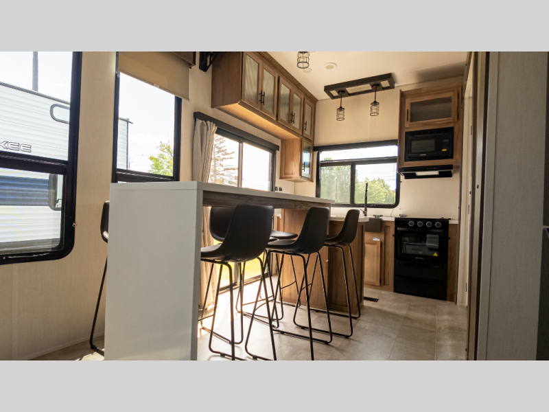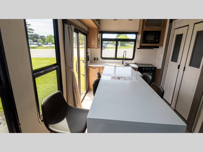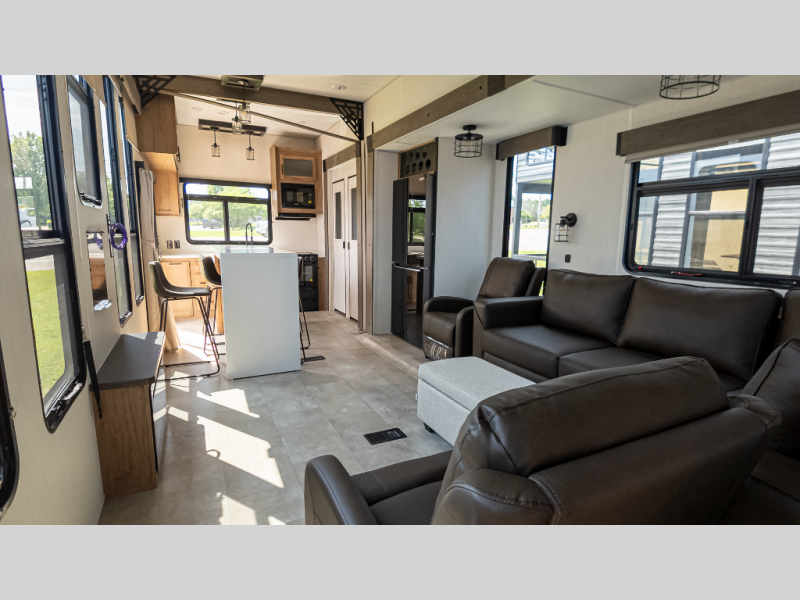 - Slide-Outs: 3 (kitchen island, living area, bedroom)