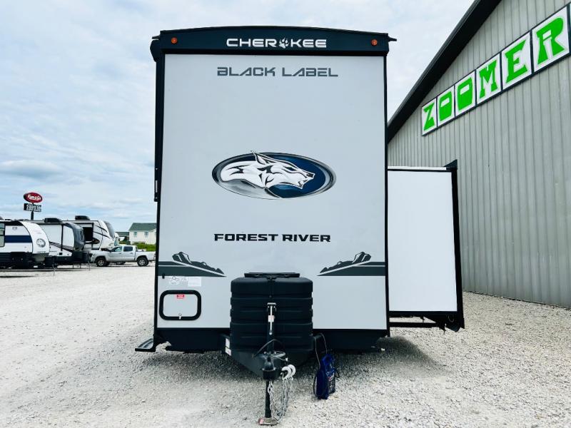 Enjoy comforts of home wherever you decide to roam in a Cherokee Timberwolf Black Label destination trailer by Forest River. The seamless roofing membrane with heat reflectivity and power gear frame technology provide a durable foundation to your RV. You will also appreciate the exclusive solar thermo controlled reflective tinted safety glass windows, tire pressure monitors, and an on-demand tankless water heater to make extended stays easier than ever. Inside, the night shades will provide your crew with privacy, while the LED lights illuminate your space. There are also seamless countertops, along with a premium bedding ensemble and comforter, USB charging stations, and a supersized central A/C unit. The Black Label Package features hung fiberglass gel coat sided walls, Thermo-Foil Arctic insulation, and a frameless window package. There are also upgraded reading lights, designer cushion fabric, and upgraded solid surface countertops to have you feeling right at home!