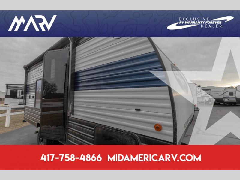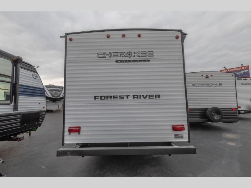 The Cherokee Wolf Den travel trailers by Forest River are lightweight for easy towing, while still including the camping essentials you're looking for! There are a variety of floorplans to choose from, including bunkhouse models, couple's units, and even all-electric floorplans! You'll find a tub/shower in each travel trailer, a comfortable queen bed, seating spaces to relax on, and kitchen amenities that will make your space feel more like home. There are storage spaces inside for your belongings plus outdoor storage for fishing gear, camp chairs, tools, and more! Start a new adventure today in a Cherokee Wolf Den travel trailer today!