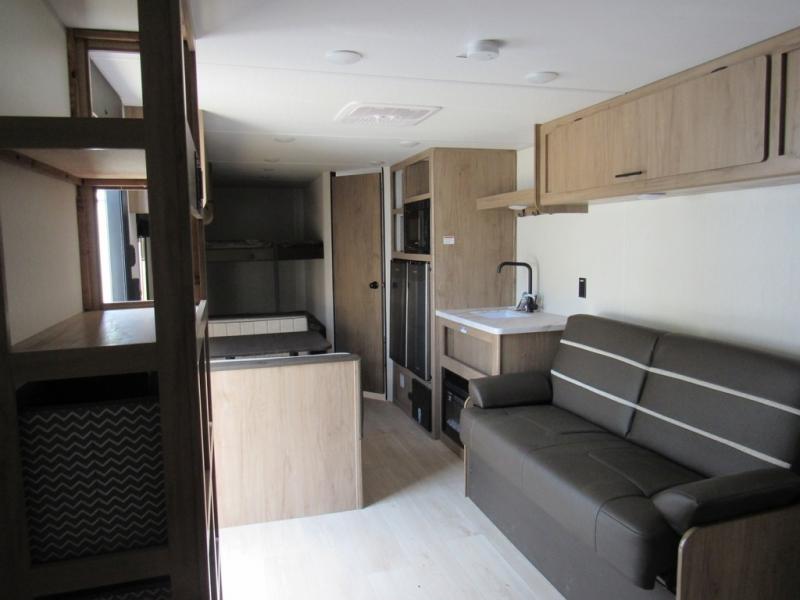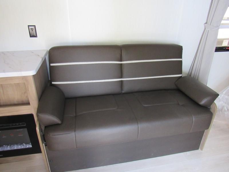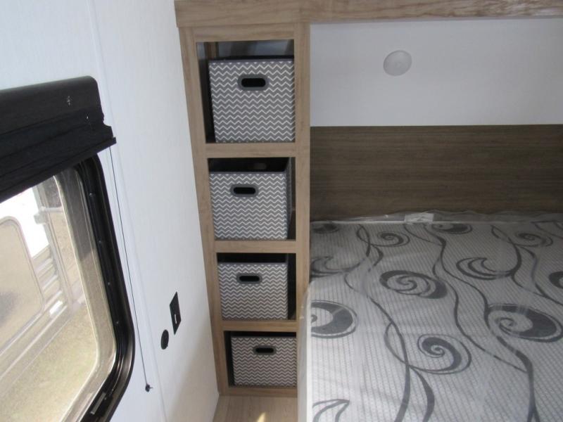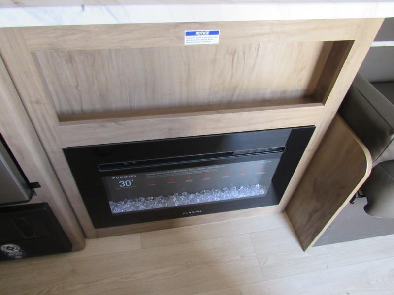 Enjoy family adventures in this all-electric bunk model which features sleeping for eight to ten depending on size with a queen bed up front, double bed bunks in the rear curbside corner, and you could even convert the booth dinette and sofa to sleep more. Inside, you will find ample storage with overhead cabinets and a large shelf above the queen bed, plus more shelves next to the entry door, as well as a pantry and storage on either side of the bed. You will appreciate the full bath with tub/shower, toilet, and sink so you can skip the campground facilities. On the outside, you will also find a 12' awning for added outdoor living, and outside storage for your camping gear, plus more!