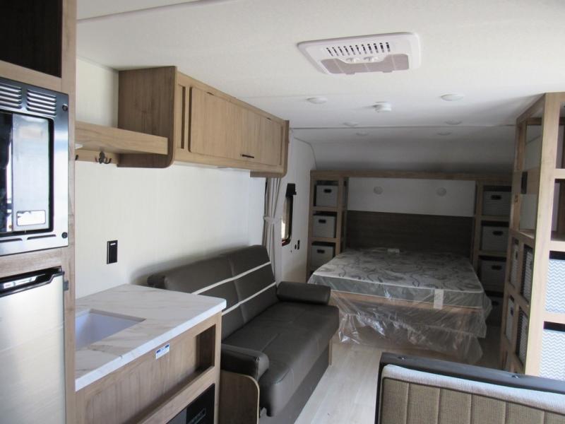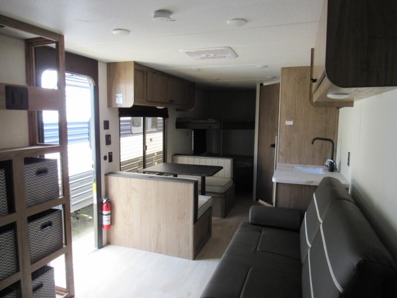 The Cherokee Wolf Den travel trailers by Forest River are lightweight for easy towing, while still including the camping essentials you're looking for! There are a variety of floorplans to choose from, including bunkhouse models, couple's units, and even all-electric floorplans! You'll find a tub/shower in each travel trailer, a comfortable queen bed, seating spaces to relax on, and kitchen amenities that will make your space feel more like home. There are storage spaces inside for your belongings plus outdoor storage for fishing gear, camp chairs, tools, and more! Start a new adventure today in a Cherokee Wolf Den travel trailer today!