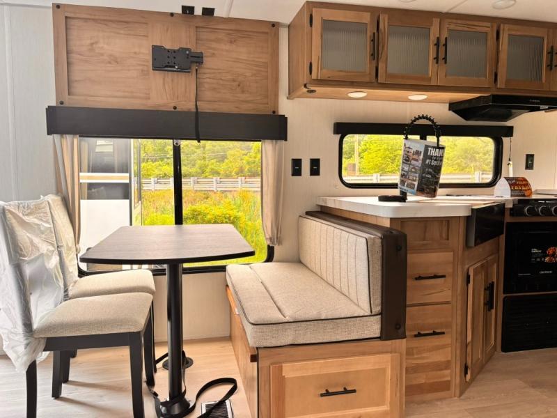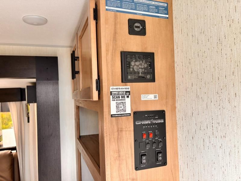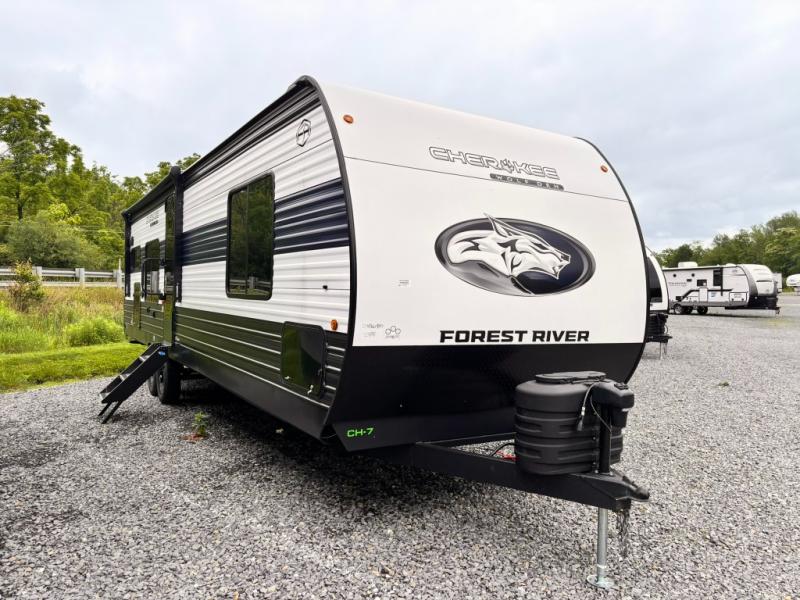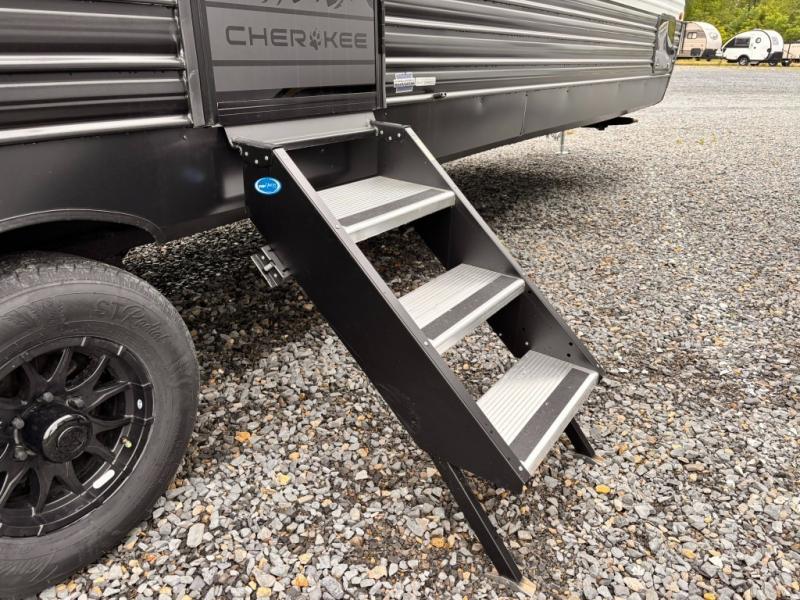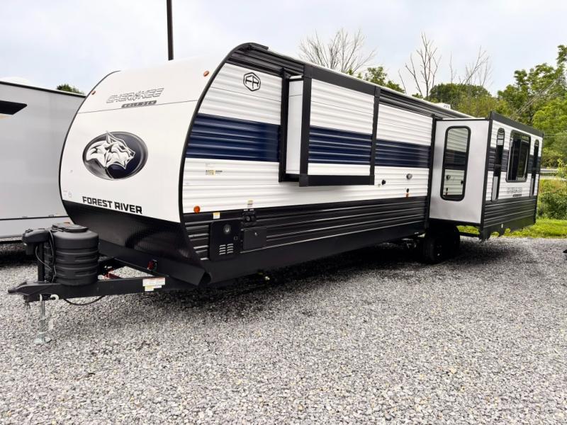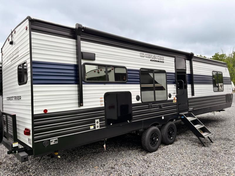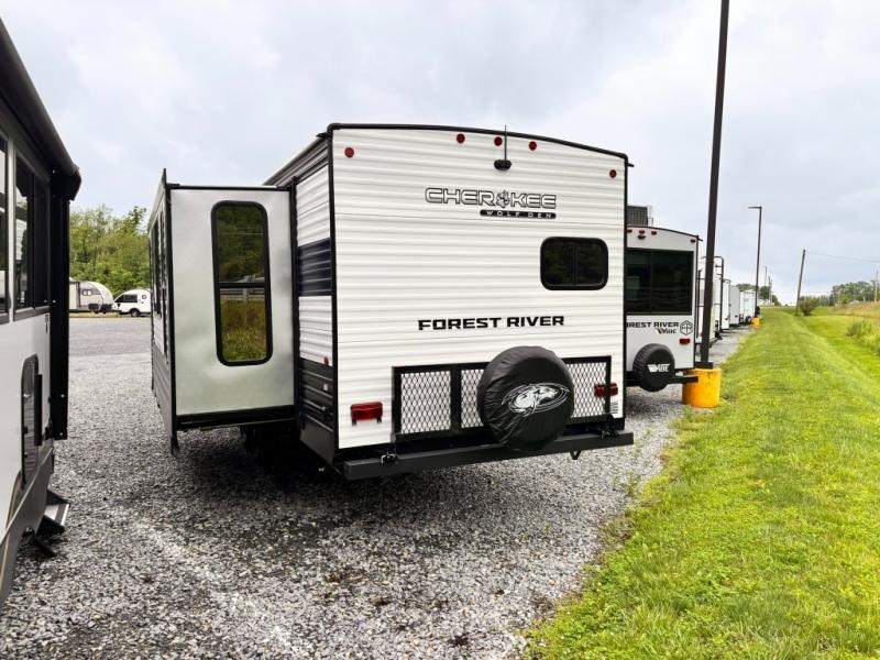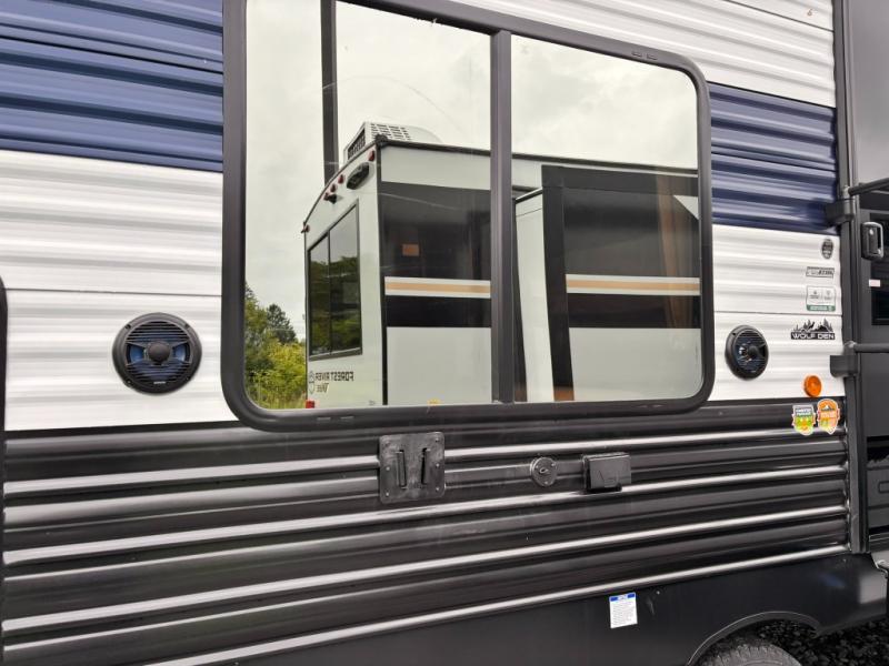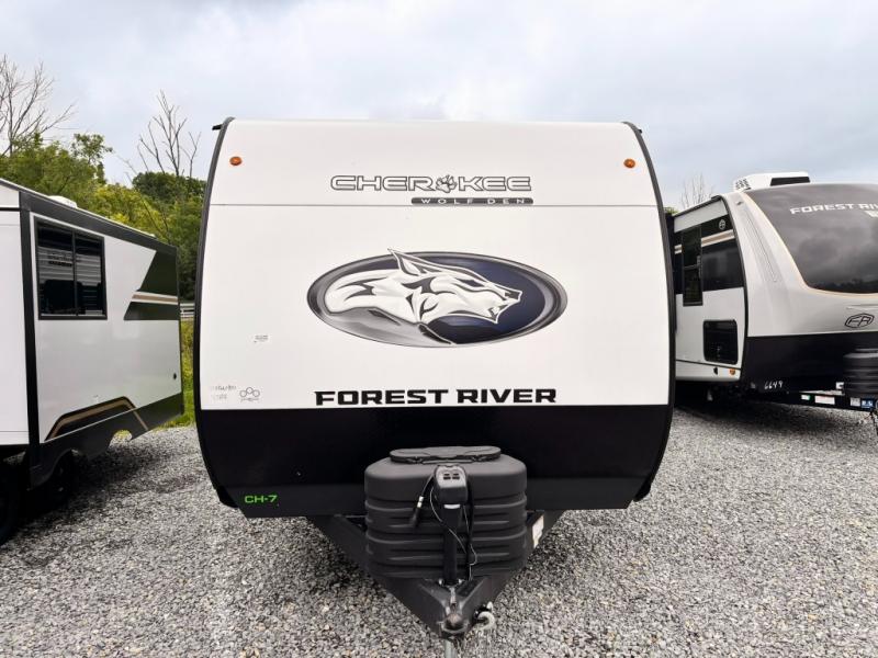 If the open road is calling your name, then answer it with one of these Forest River Cherokee Wolf Den travel trailers! They are built with an aerodynamic smooth radius front profile, a one-piece walkable decked roof, and a Cherokee exclusive stable step with oversized landing. There are also four stabilizer jacks outside, along with ladder prep, a premium wheel package and exclusive solar thermo controlled reflective tinted safety glass windows. The seamless countertops inside will be easy to keep clean, and the premium bedding will have you feeling right at home. There are also USB-C charging stations to keep your electronics charged and ready to go, plus many more stand-out features!