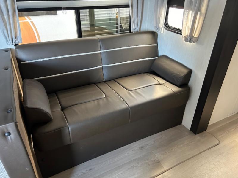 If the open road is calling your name, then answer it with one of these Forest River Cherokee Wolf Den travel trailers! They are built with an aerodynamic smooth radius front profile, a one-piece walkable decked roof, and a Cherokee exclusive stable step with oversized landing. There are also four stabilizer jacks outside, along with ladder prep, a premium wheel package and exclusive solar thermo controlled reflective tinted safety glass windows. The seamless countertops inside will be easy to keep clean, and the premium bedding will have you feeling right at home. There are also USB-C charging stations to keep your electronics charged and ready to go, plus many more stand-out features!