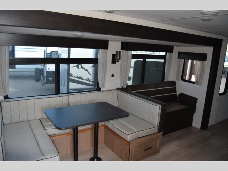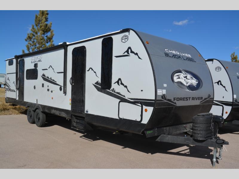 Take your adventures up a notch with the Cherokee Black Label by Forest River. There are a variety of models to choose from, including travel trailers, fifth wheels, destination trailers, and even a fifth wheel toy hauler to fit your needs best. You'll love the sleek hung fiberglass gel coat sided walls, along with the frameless window package and Thermo-Foil arctic insulation to help extend your camping season. Head inside to find upgraded solid surface countertops, upgraded reading lights, designer cushion fabric, and many more comforts.