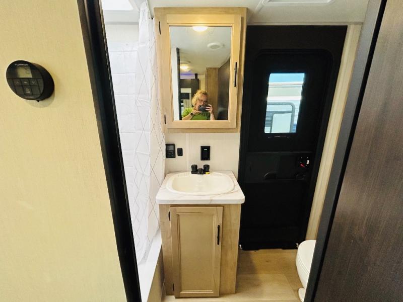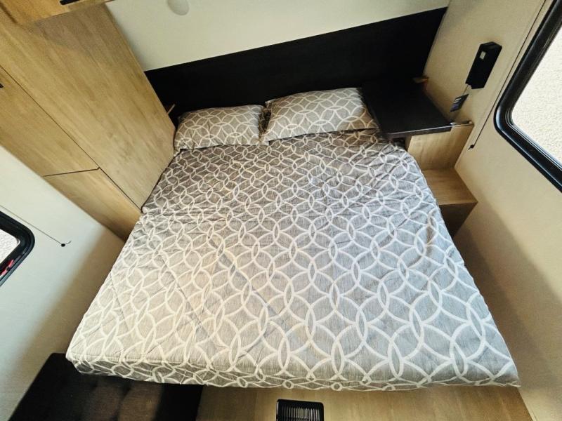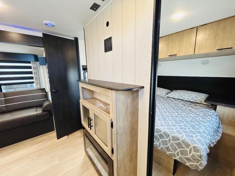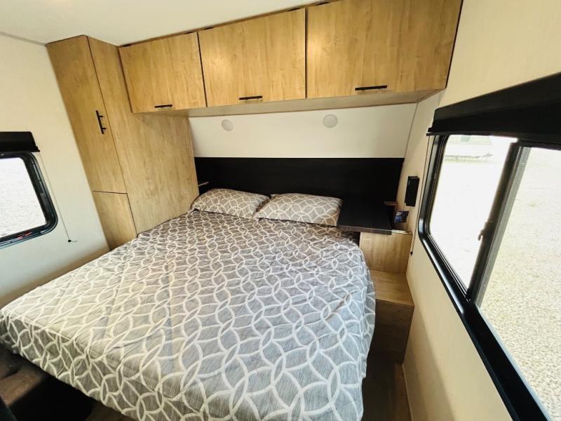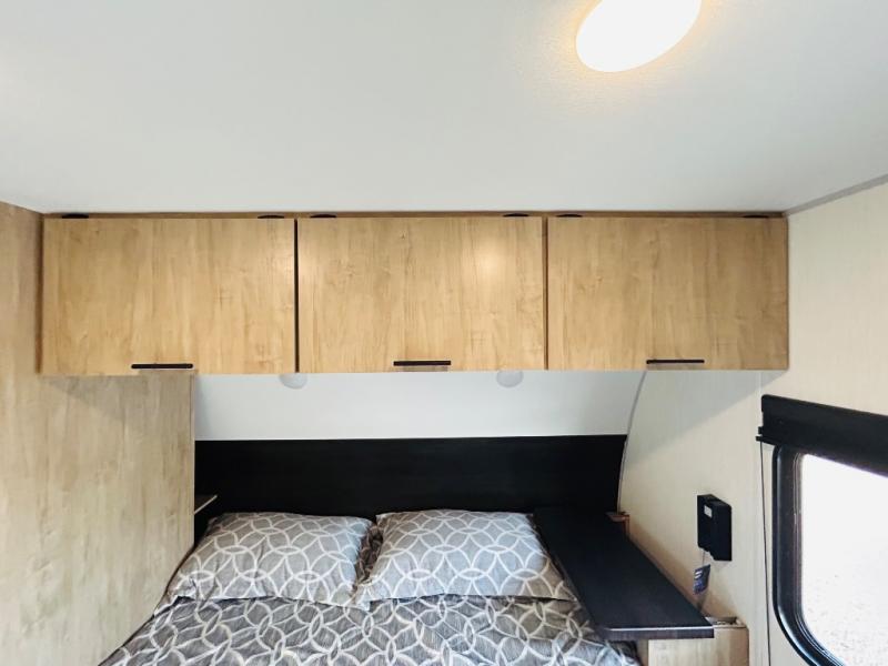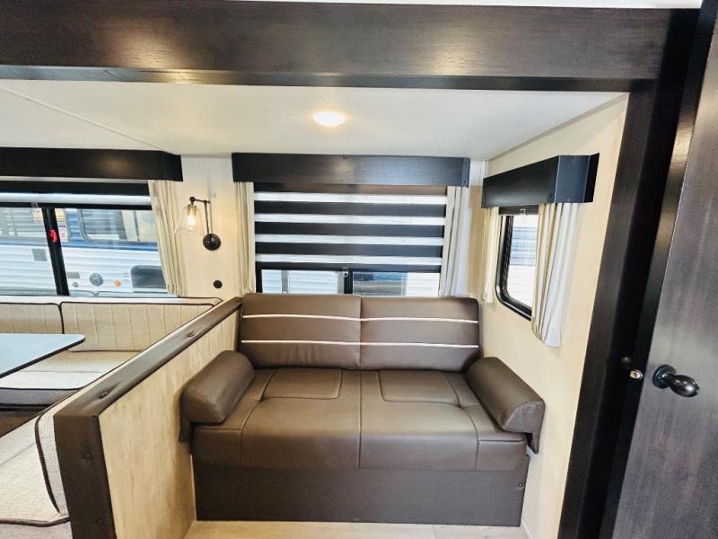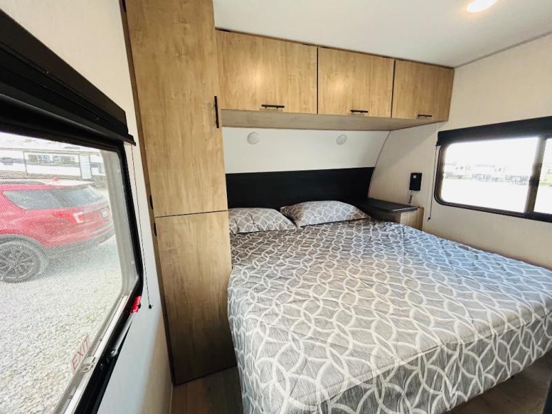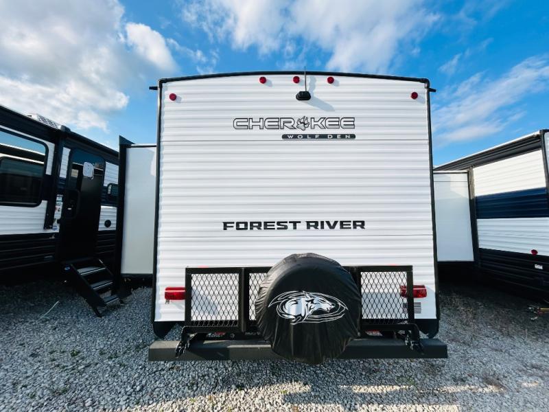 If the open road is calling your name, then answer it with one of these Forest River Cherokee Wolf Den travel trailers! They are built with an aerodynamic smooth radius front profile, a one-piece walkable decked roof, and a Cherokee exclusive stable step with oversized landing. There are also four stabilizer jacks outside, along with ladder prep, a premium wheel package and exclusive solar thermo controlled reflective tinted safety glass windows. The seamless countertops inside will be easy to keep clean, and the premium bedding will have you feeling right at home. There are also USB-C charging stations to keep your electronics charged and ready to go, plus many more stand-out features!