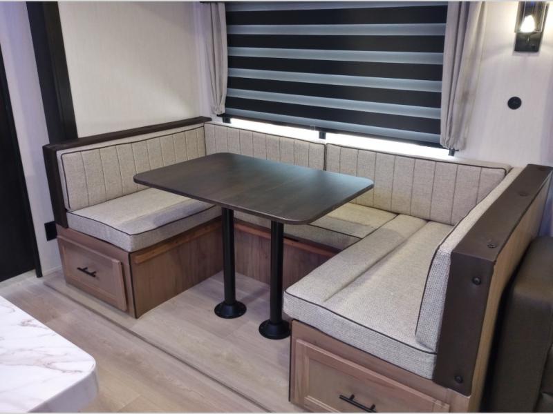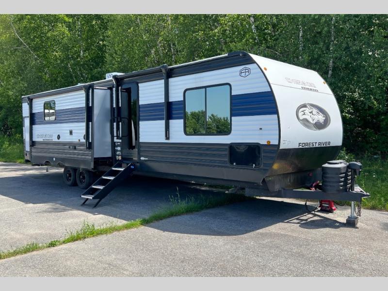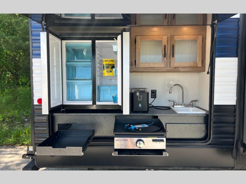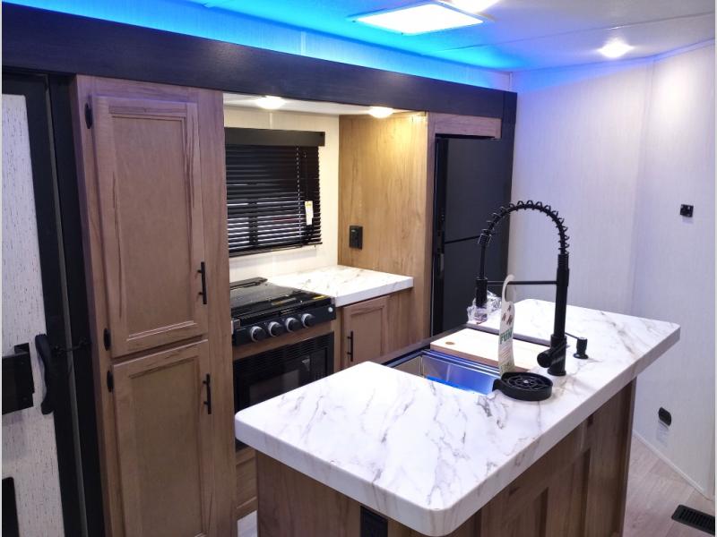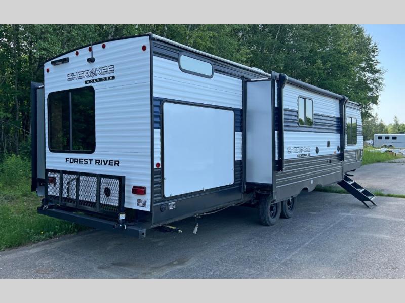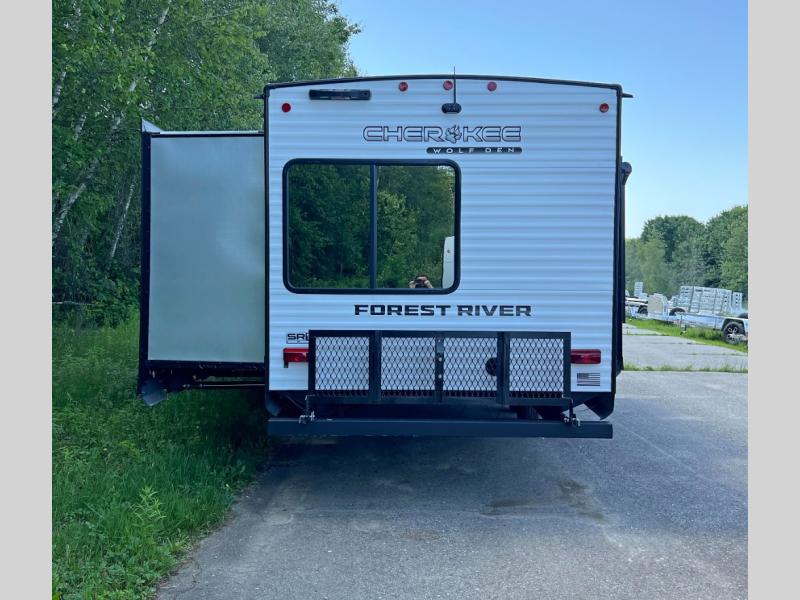 If the open road is calling your name, then answer it with one of these Forest River Cherokee Wolf Den travel trailers! They are built with an aerodynamic smooth radius front profile, a one-piece walkable decked roof, and a Cherokee exclusive stable step with oversized landing. There are also four stabilizer jacks outside, along with ladder prep, a premium wheel package and exclusive solar thermo controlled reflective tinted safety glass windows. The seamless countertops inside will be easy to keep clean, and the premium bedding will have you feeling right at home. There are also USB-C charging stations to keep your electronics charged and ready to go, plus many more stand-out features!