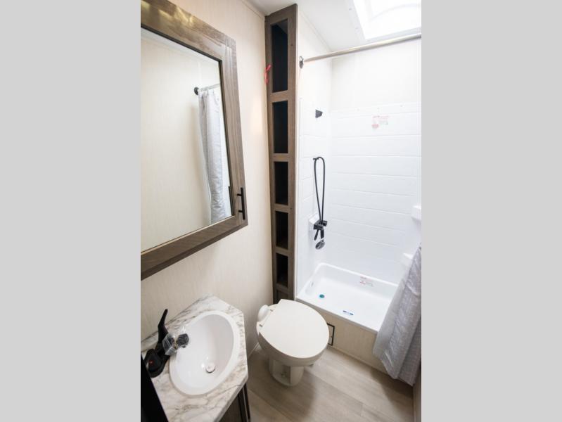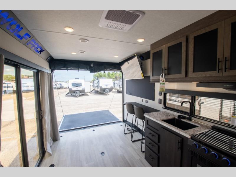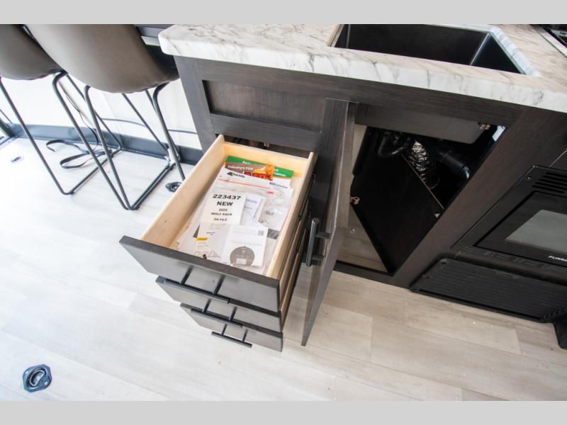 With any Cherokee Wolf Pack toy hauler by Forest River, you will enjoy never-ending adventures. You'll appreciate the 8' 6" wide body design so you can bring along toys and gear, and there is a high-output LED loading light for added convenience when you're getting back to camp late. There is real wood cabinet doors and drawers inside and LED lights to keep your space well lit. These toy haulers are built with tongue and groove plywood main floors and a forced air heated underbelly and enclosed holding tanks that will help you extend your camping season.