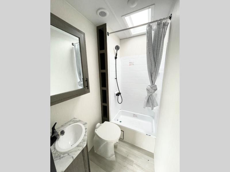 With any Cherokee Wolf Pack toy hauler by Forest River, you will enjoy never-ending adventures. You'll appreciate the 8' 6" wide body design so you can bring along toys and gear, and there is a high-output LED loading light for added convenience when you're getting back to camp late. There is real wood cabinet doors and drawers inside and LED lights to keep your space well lit. These toy haulers are built with tongue and groove plywood main floors and a forced air heated underbelly and enclosed holding tanks that will help you extend your camping season.