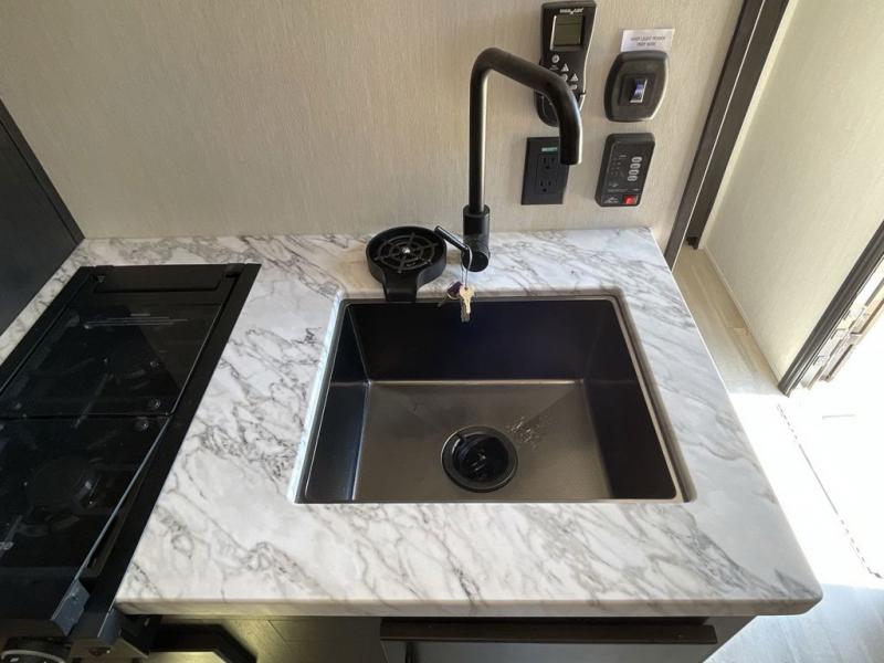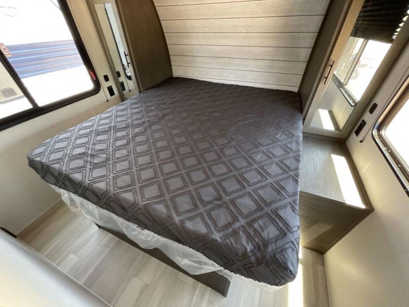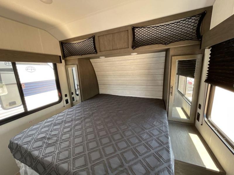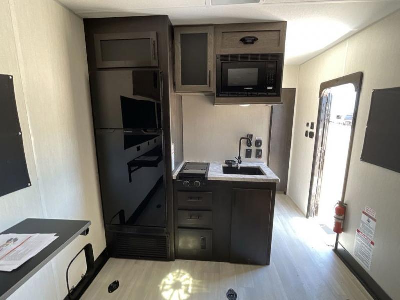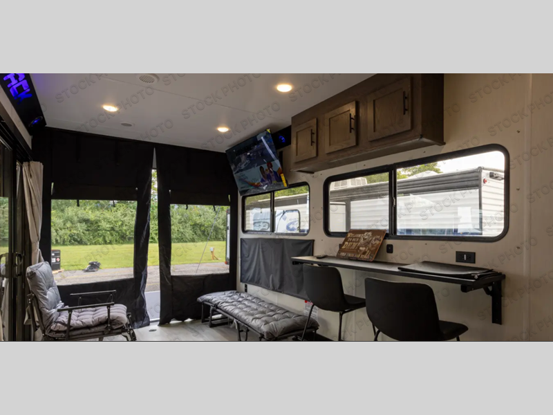 You'll love every minute spent in this spacious toy hauler! Since there is 14' of total garage space, you can plan to bring along kayaks, bikes, and hiking gear galore. This model includes a flip-up counter with stools, glass patio doors, and full kitchen amenities so you can whip up your best meals each day. The full bath will let you freshen up at night, and the king bed in the front bedroom is sure to bring comfort!