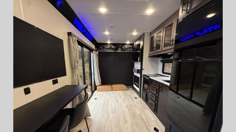 With any Cherokee Wolf Pack toy hauler by Forest River, you will enjoy never-ending adventures. You'll appreciate the 8' 6" wide body design so you can bring along toys and gear, and there is a high-output LED loading light for added convenience when you're getting back to camp late. There is real wood cabinet doors and drawers inside and LED lights to keep your space well lit. These toy haulers are built with tongue and groove plywood main floors and a forced air heated underbelly and enclosed holding tanks that will help you extend your camping season.