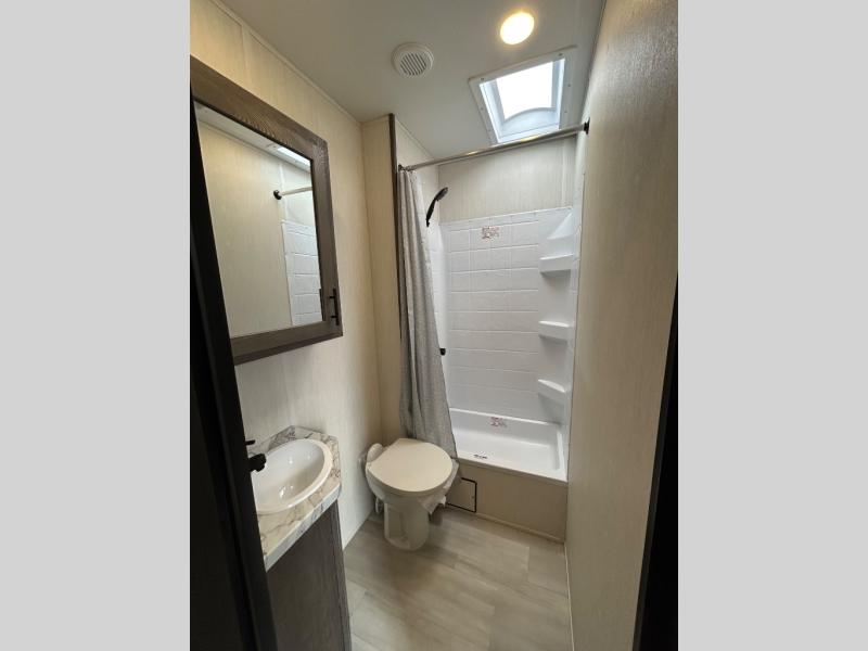 With any Cherokee Wolf Pack toy hauler by Forest River, you will enjoy never-ending adventures. You'll appreciate the 8' 6" wide body design so you can bring along toys and gear, and there is a high-output LED loading light for added convenience when you're getting back to camp late. There is real wood cabinet doors and drawers inside and LED lights to keep your space well lit. These toy haulers are built with tongue and groove plywood main floors and a forced air heated underbelly and enclosed holding tanks that will help you extend your camping season.