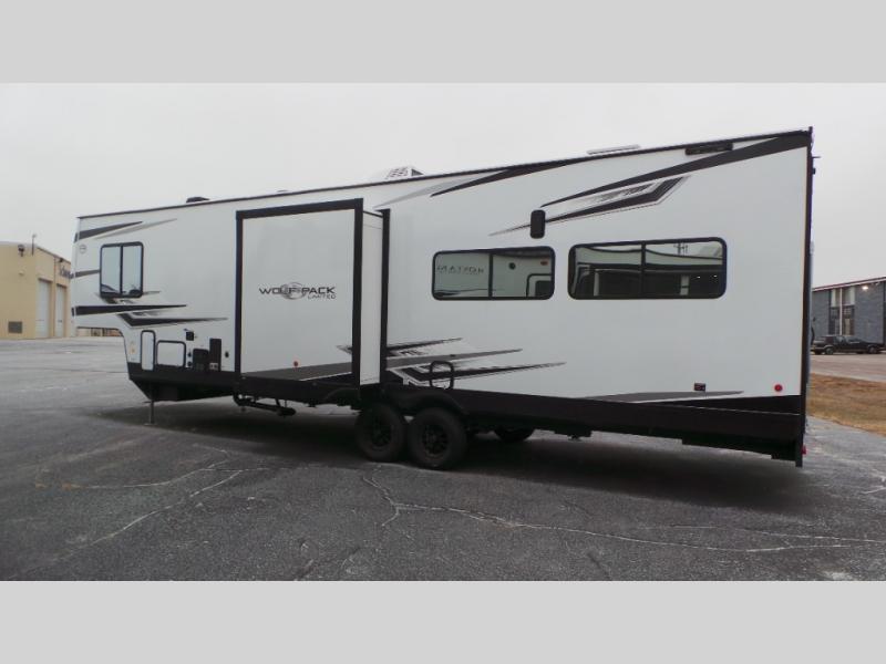 Approximately half of Wolf Pack customers are bunkhouse buyers looking for more sleeping room and versatility in their unit. The Wolf Pack is not always a toy hauler or a bunkhouse. It is whatever you need it to be for the trip you are about to take. If your family likes to take a golf cart, motorcycles, ATV’s, bicycles, kayak’s, coolers, grills, firewood and all the other camping staples, but doesn’t like to take the second vehicle to get it there, look no further than the Wolf Pack. Versatility is the name of the game!