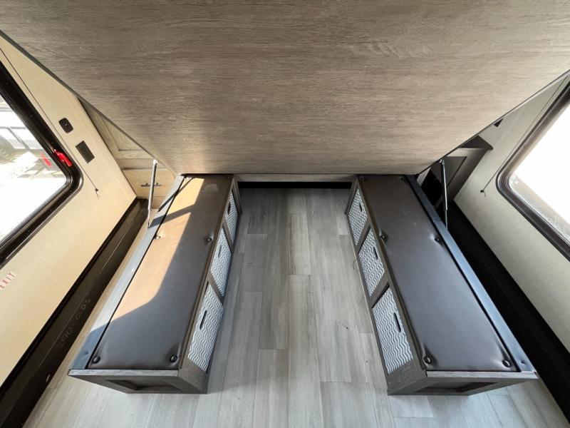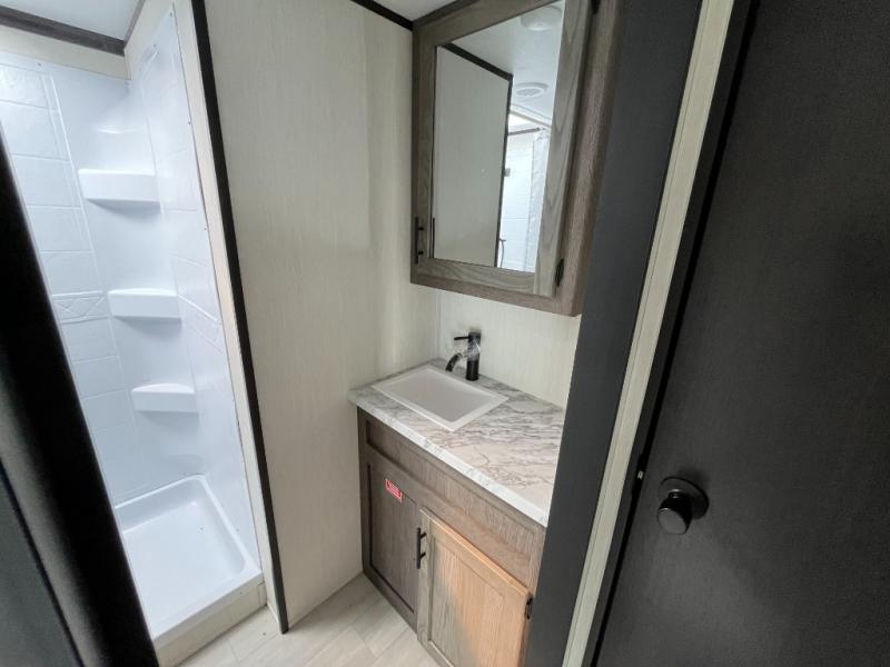 With any Cherokee Wolf Pack toy hauler by Forest River, you will enjoy never-ending adventures. You'll appreciate the 8' 6" wide body design so you can bring along toys and gear, and there is a high-output LED loading light for added convenience when you're getting back to camp late. There is real wood cabinet doors and drawers inside and LED lights to keep your space well lit. These toy haulers are built with tongue and groove plywood main floors and a forced air heated underbelly and enclosed holding tanks that will help you extend your camping season.