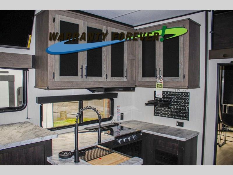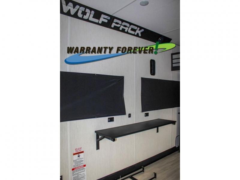 With any Cherokee Wolf Pack toy hauler by Forest River, you will enjoy never-ending adventures. You'll appreciate the 8' 6" wide body design so you can bring along toys and gear, and there is a high-output LED loading light for added convenience when you're getting back to camp late. There is real wood cabinet doors and drawers inside and LED lights to keep your space well lit. These toy haulers are built with tongue and groove plywood main floors and a forced air heated underbelly and enclosed holding tanks that will help you extend your camping season.