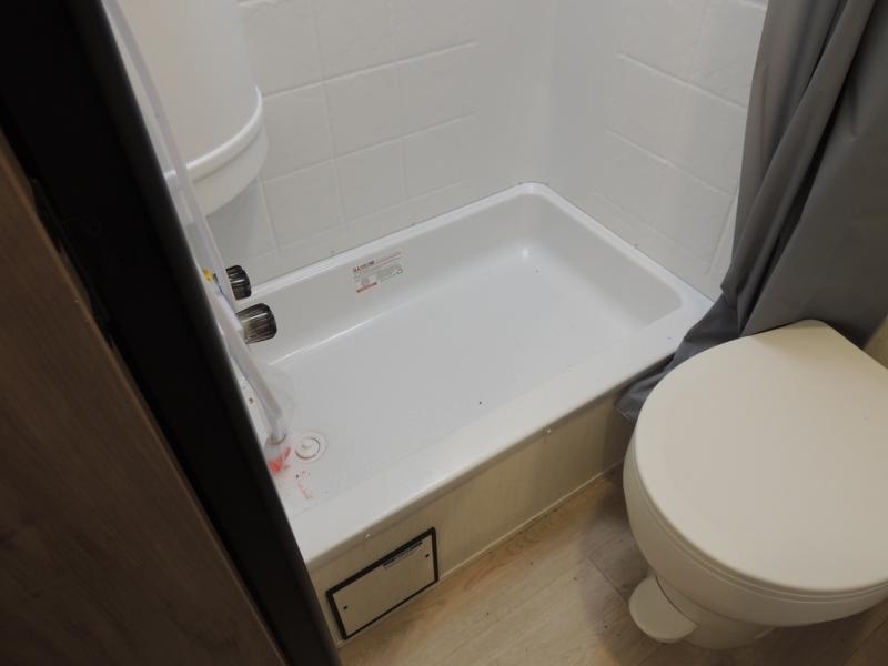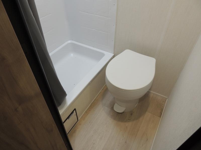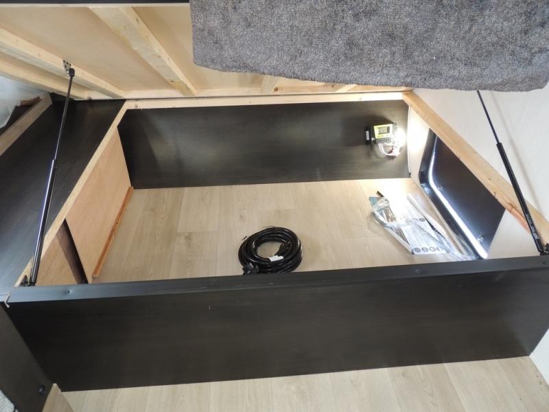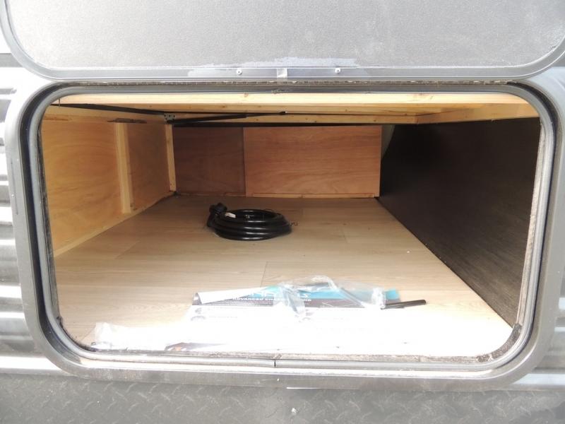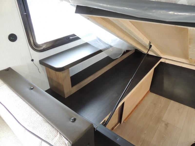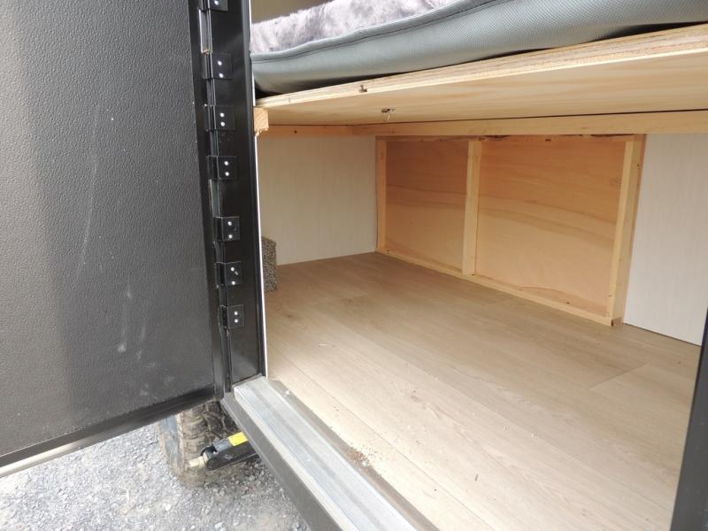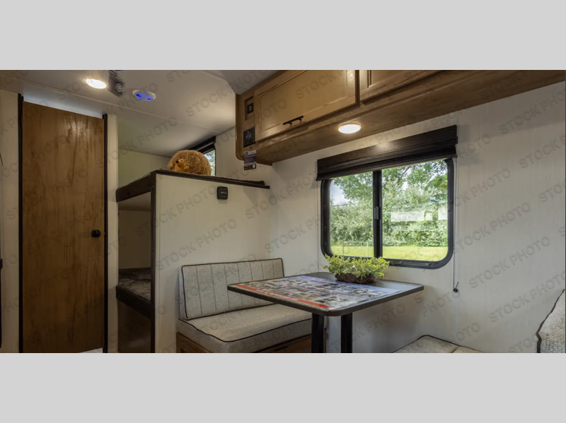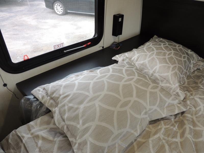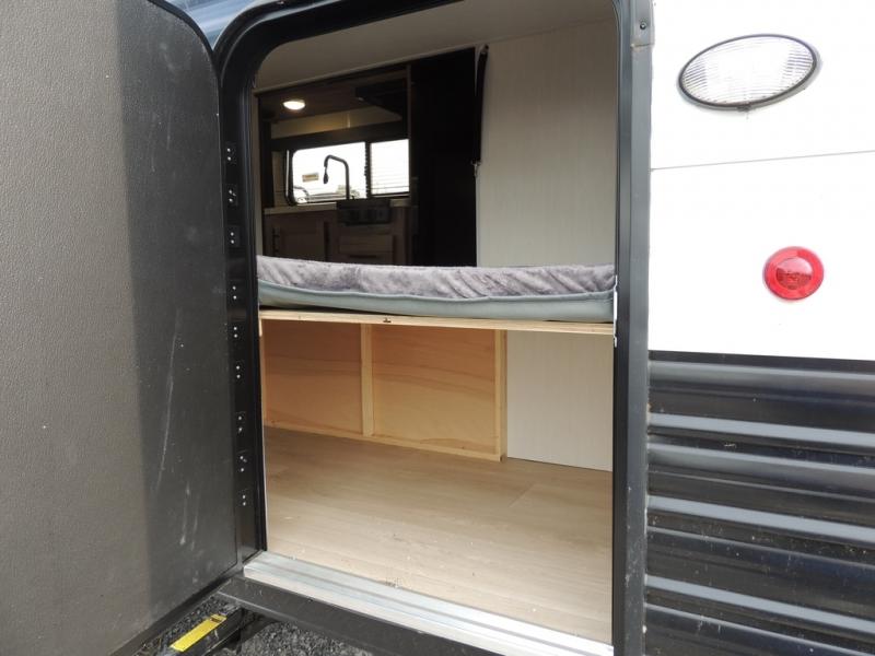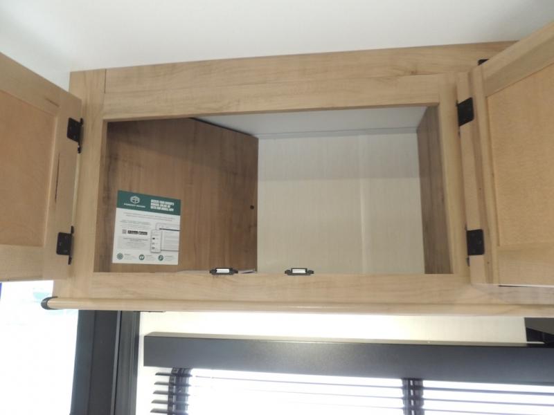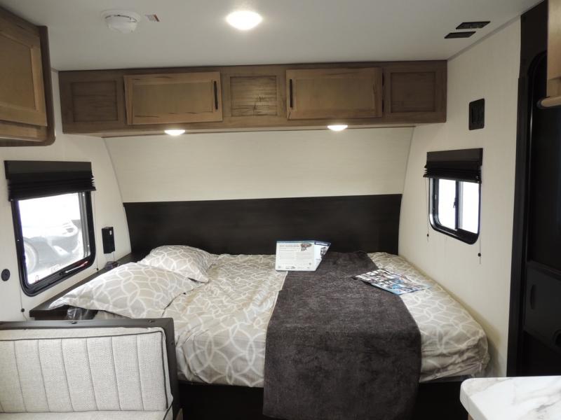The whole family can sleep comfortably in this travel trailer! It has a set of bunk beds for the kids to sleep on, and you can sleep comfortably on the front queen bed with overhead cabinets and a shelf. There is even an exterior storage plus door that accesses the storage space under the bottom bunk. The chef will enjoy preparing their best home cooked meals either indoors with the high output cooktop or at the outside mini kitchen while staying protected by the 12' power awning!